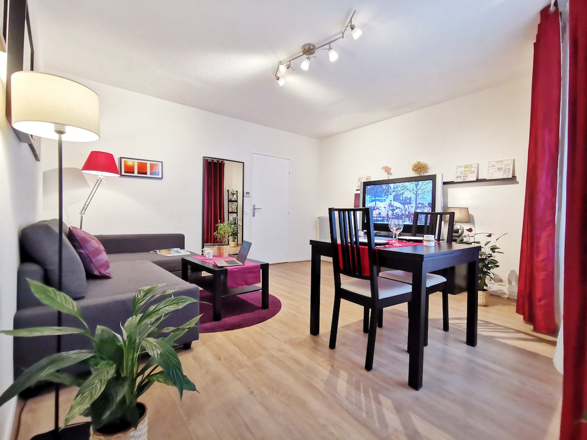 [Heb je maar één bed nodig? Vind de advertentie "1 bed" op mijn ledenprofiel] Modern appartement in het hart van de oude voetgangerswijk: veel restaurants en bars in de buurt, de belangrijkste winkelstraat op steenworp afstand, ideaal gelegen om ten volle te genieten van Tours! 46 m ² met een slaapkamer, woonkamer met converteerbare bank, onafhankelijke keuken, badkamer en toilet, en veel huishoudelijke artikelen tot uw beschikking.