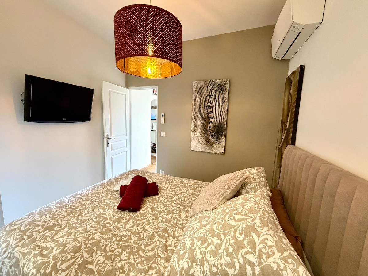 Welkom in je 47 m² grote cocon met airconditioning, perfect uitgerust, in het hart van Septèmes-les-Vallons, tussen Aix-en-Provence en Marseille. Perfect voor een stel, een klein gezin of vrienden, onze studio combineert modern comfort, rust en een strategische locatie om de regio te ontdekken. Gelegen in een doodlopende straat in een rustige residentie, zul je genieten van een rustige omgeving terwijl je slechts een paar minuten van de zee, het TGV-treinstation en een groot winkelgebied verwijderd bent.