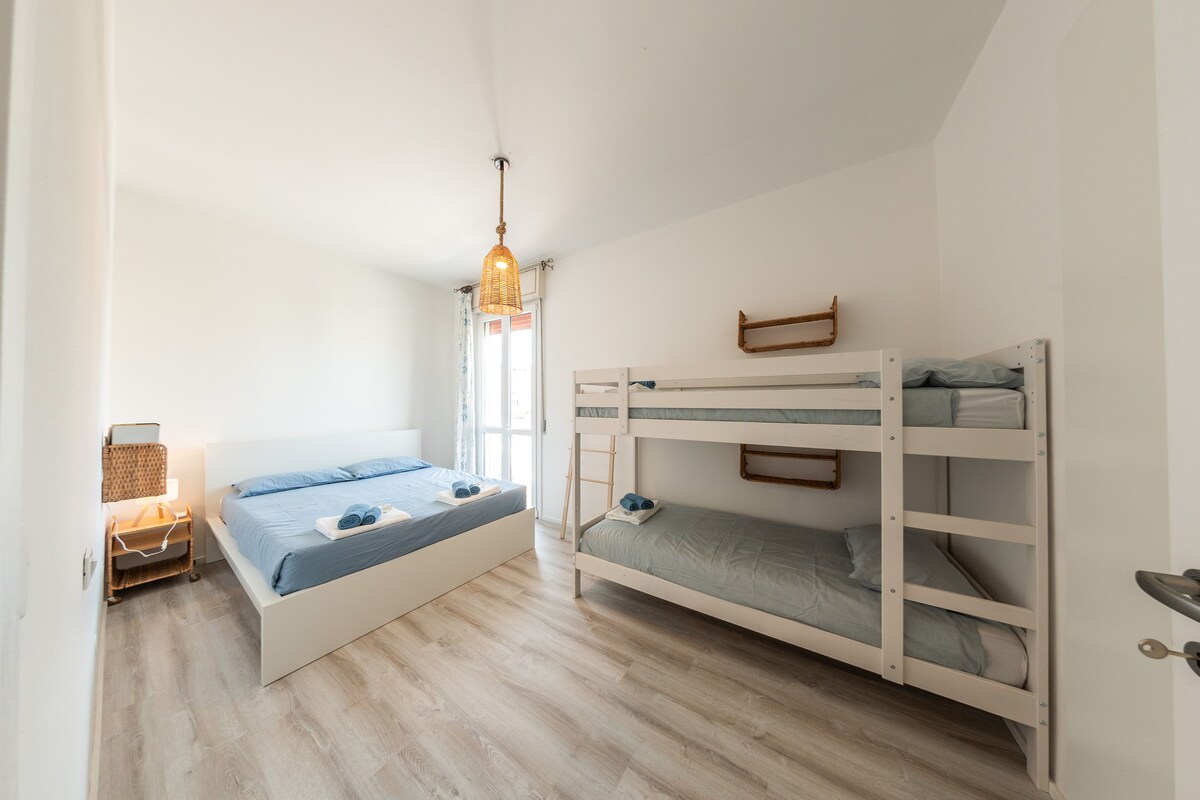 Attico Vista Mare, uniek in de stad, spectaculaire terrassen waar je kunt eten of entertainen op comfortabele ligstoelen, unieke locatie direct aan het zand. Gezien de hoogtepositie, geventileerd en het driedubbele uitzicht garandeer ik je dat je zelfs in augustus nooit zult last hebben van de hitte. Net als vergeet je nooit de kans om te genieten van de zonsopgang wonderen (direct in bed) en zonsondergangen. Het privésolarium stelt je in staat om een prachtig 360-graden uitzicht te hebben. Heb een geweldige vakantie.