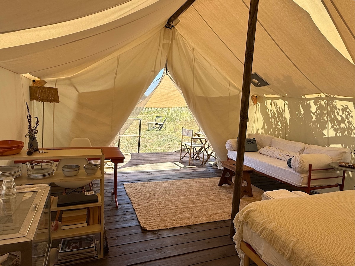 Escape to the soothing world of Valle Dolce Lodge, where coastal charm meets romantic seclusion in a lush green valley. Looking for a truly unique experience? Then this is your perfect hidden sanctuary. Nestled on the edge of our olive grove, surrounded by vineyards, the self-sufficient lodge offers tranquility and views up to the sea. Step outside and find your private showerroom, spa and outdoor kitchen. A 13' drive will take you to the renowned Trabocchi Coast and just 20' into Vasto town.