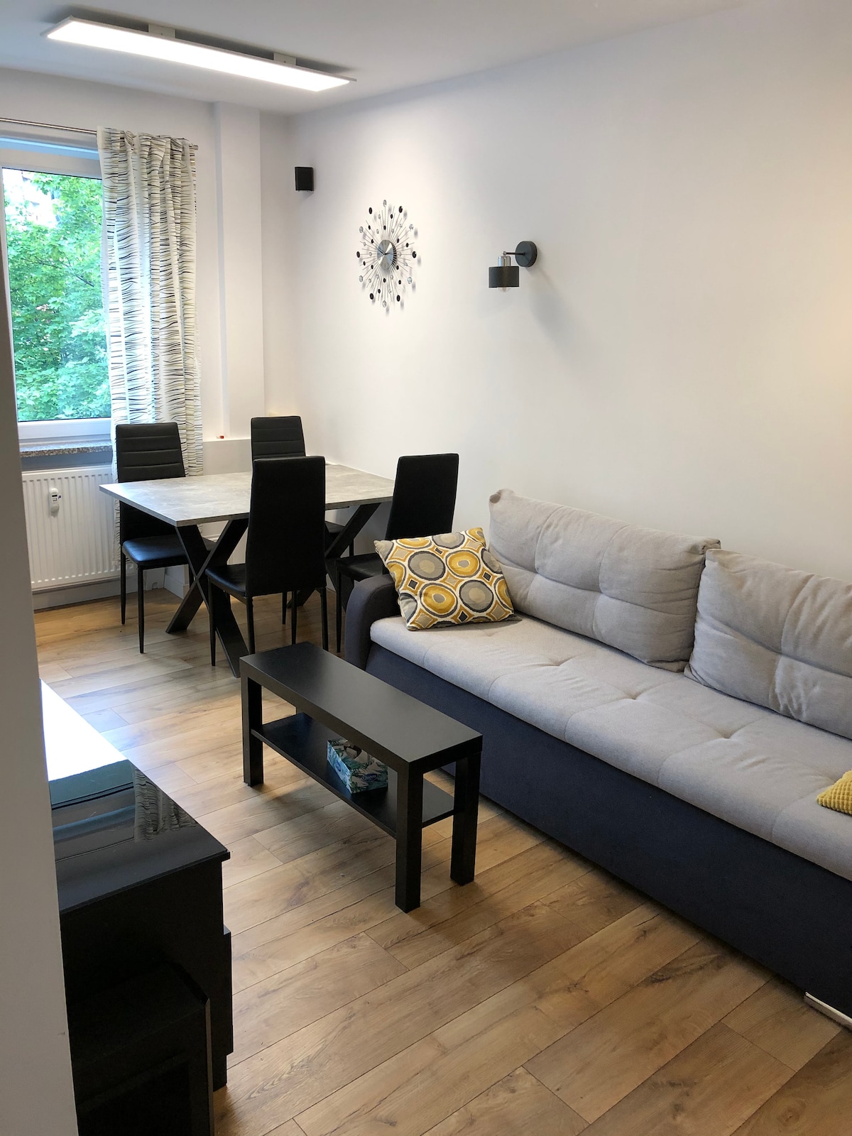 Appartement Ligocka is een licht en comfortabel appartement gelegen in de rustige en veilige wijk Brynów, Katowice. Het is onlangs gerenoveerd en biedt een rustige, minimalistische ruimte met veel daglicht — ideaal voor een ontspannen verblijf. Op een steenworp afstand van de iconische Kopalnia Wujek en het museum, een symbool van het erfgoed van de Silezische mijnwerkers, combineert het appartement modern comfort met de rijke geschiedenis van het gebied en biedt het een authentieke en handige Silezische woonervaring.
