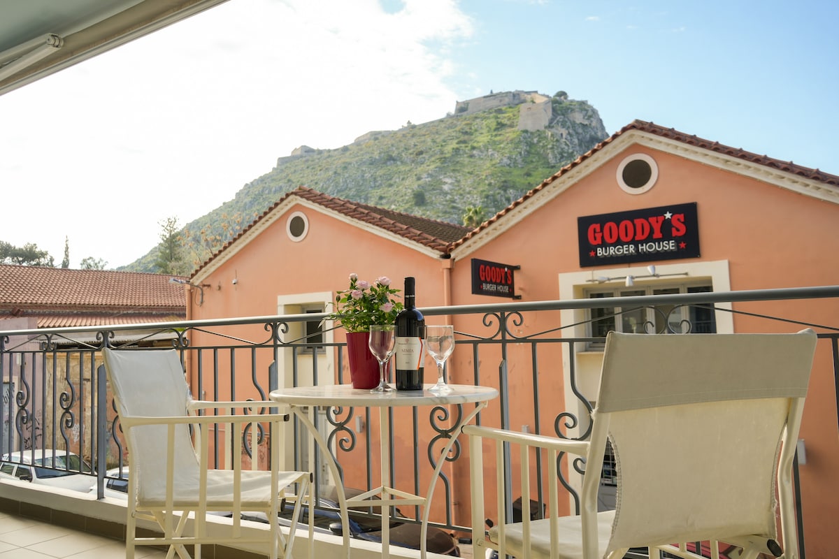 Gezellig modern appartement op de 1e verdieping in het oude centrum van Nafplio, 53 m ² met uitzicht op Palamidi. Het ligt op slechts 500 meter lopen van het Syntagmaplein. Het appartement is geschikt voor 1-4 personen. Het heeft een slaapkamer met een tweepersoonsbed, een woonkamer – keuken en een badkamer. In de woonkamer is een slaapbank aanwezig die kan worden omgebouwd tot een tweepersoonsbed. Het appartement biedt internet (200 Mbps). Het heeft ook 2 airconditioners, tv en vele andere faciliteiten.