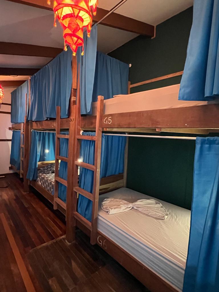Gemengde slaapzaal met 4/5 bedden. De bedden van deze slaapzaal met airconditioning hebben privégordijnen, leeslampjes en stopcontacten. Voor elk bed is een kluisje toegewezen. 3 gedeelde badkamers buiten de kamer, er is een gedeeld terras met uitzicht op het strand, hangmatten en stoelen op het strand. Kamergrootte 20 m² Gelegen op de tweede verdieping Volledig uitgeruste gemeenschappelijke keuken. Optische glasvezel wifi. Roken niet toegestaan.