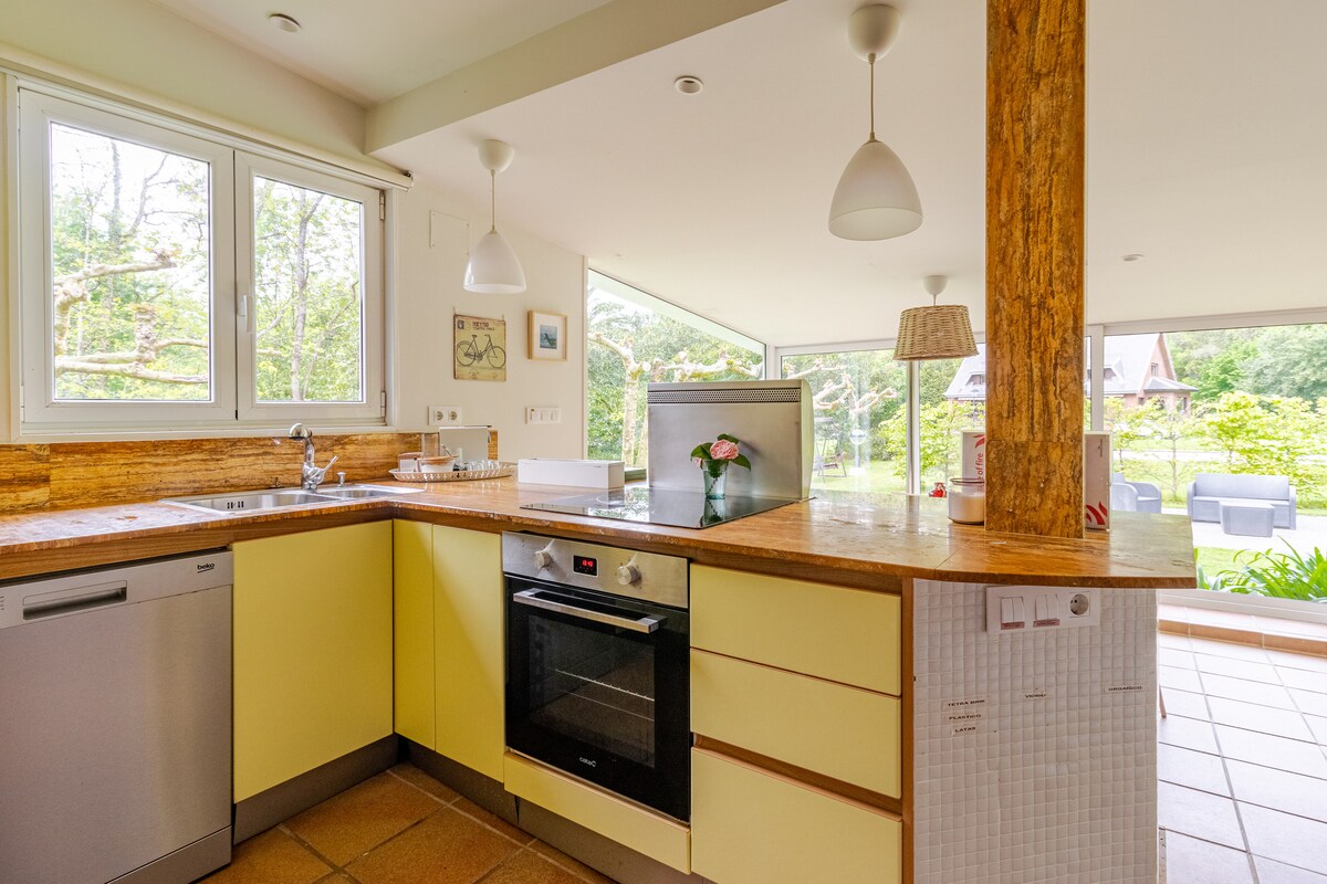 Ontspan en kom tot rust in dit stenen huis, omgeven door natuur en met alle voorzieningen in de buurt, zoals supermarkten, banken en een gezondheidscentrum. Het huis heeft snelle glasvezelinternet, fitnessapparatuur en een smart-tv in elke kamer. Geniet van het terras met barbecue, ramen met muskietennetten en een bevoorrechte omgeving tussen strand (10 min) en berg. Comfortabel, onberispelijk en gezellig, met rustieke inrichting, eiken balken en zichtbare stenen.