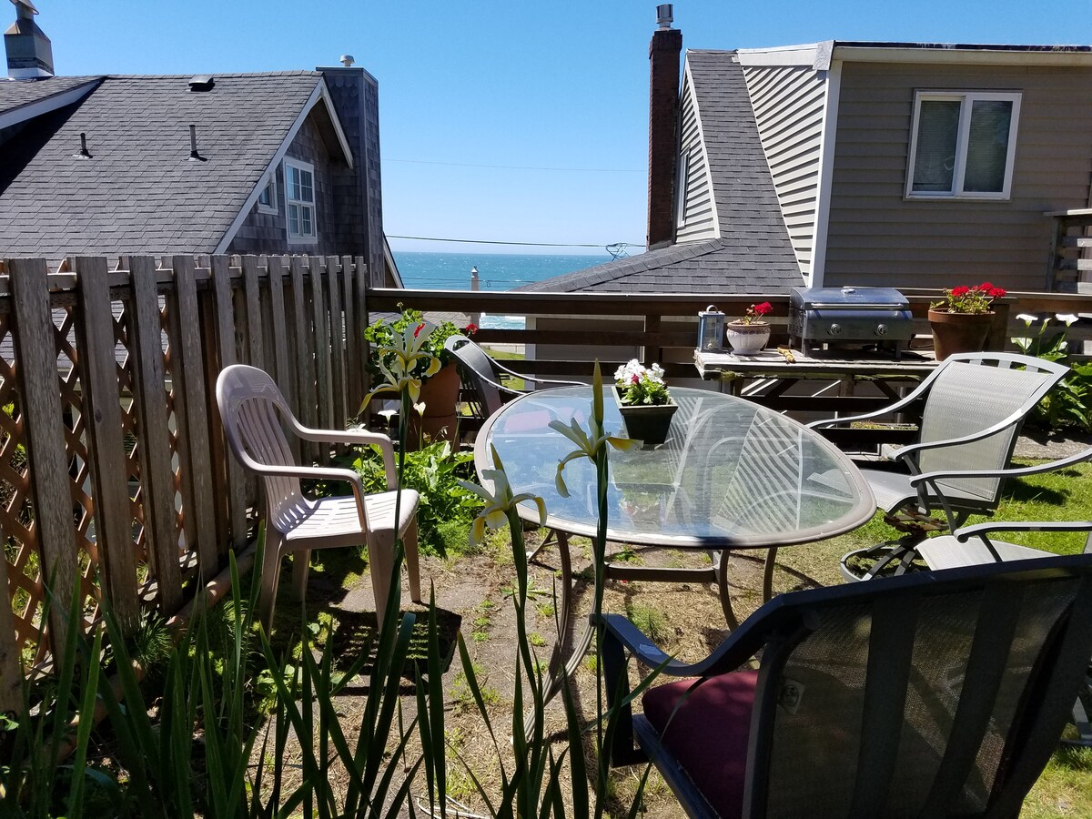 By the Waves is een 5-plex met uitzicht op de oceaan in een gemeenschap aan het strand. Deze suite bevindt zich op de tweede verdieping, heeft 2 queensize bedden en biedt plaats aan maximaal 4 volwassenen of een groep van 5 met kinderen. Jacuzzi van 1,5 meter. 2 tv 's. Gedeelde hot tub met uitzicht op de oceaan! Toegang tot het stadsstrand zonder trappen om te strandkammen. Als bedrijfsbeleid hebben we je adres nodig wanneer je reserveert. We zijn huisdiervrij. Er is een verblijfsbeleid van minimaal 2 nachten, een minimum van 3 nachten in de zomer en 4 nachten rond 4 juli.