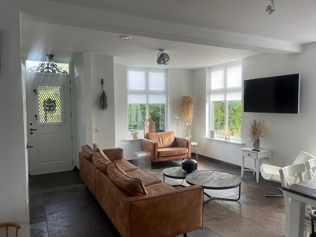 Een appartement van wel 40m2! Badkamer: wastafel, regendouche en 2 pers. bubbelbad Zitkamer: airco, luie (slaap)bank met 55 inch SMART TV met NLziet, Netflix en Chromecast Slaapkamer: Kingsize elektrisch verstelbare boxspring, 55 inch SMART TV Keuken/eethoek: 4 pers. eettafel, espressomachine, compleet ingerichte keuken: oven, magnetron, koelkast, kookplaat en vaatwasser etc. Ontbijt: meerprijs 12 euro p.p.p.n. Privé sauna: 12,50 euro p.p. per keer van 90 minuten Privé terras in achtertuin
