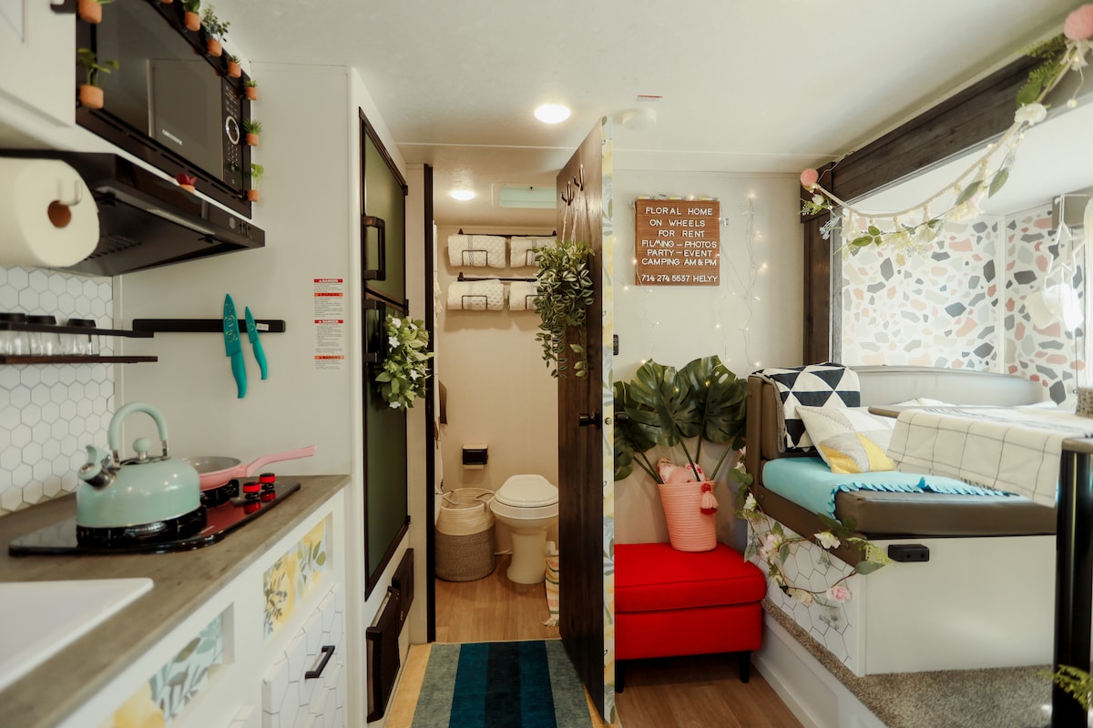 Welkom bij de Floral Home - de kleine schattige camper (camper), privé parkeren aan een zijkant van het huis, eigen ingang. ✅Stationair en volledig aangesloten. 🎁15 minuten naar het strand 🎁35 minuten naar Disneyland (exacte locatie wordt verstrekt nadat de reservering is bevestigd) Het brengt je een glamping-ervaring. ⛱️Camper is 21 ft lang, schattig ontworpen en geweldig voor 2 gasten⛱ Wifi en smart-tv ⛱Queen bed, keuken, spoeltoilet en douche ⛱1 parkeerplaats 🚭Geen drugs of 420 🚫Geen toegang tot wasserette NIET HUISDIERVRIENDELIJK, inclusief SA
