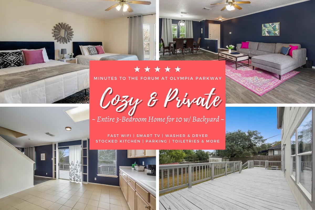 Hi! We've put lots of love in the home and hope to make your stay a wonderful experience. - Conveniently located near I35, FM1604, RAFB, 5 minutes away from IKEA and lots of restaurants - two-care garage with plenty of room for two cars in the garage and extra parking in the driveway - Super safe family friendly and quiet neighborhood with Live Oak PD patrolling the area. Live Oak PD and Fire Dept close by - sleeps 9 - SMART TV with adjustable arm and plenty of seating - washer and dryer
