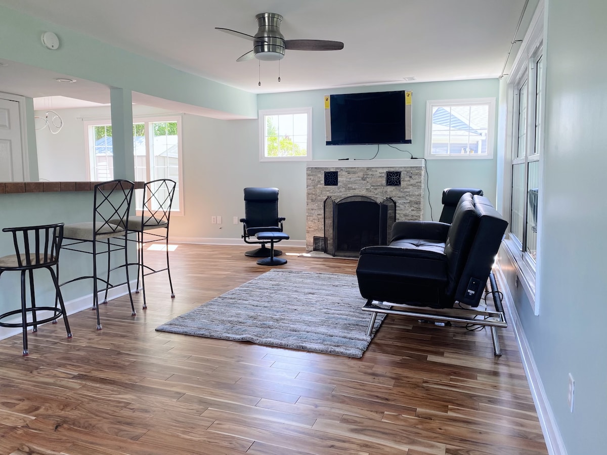Verblijf in ons nieuw gebouwde huis aan het meer, gelegen aan Grand Beach Lake aan het einde van een privéstraat. ✔ 1100 sq ft w/eigen ingang ✔ Perfect voor langere verblijven en flexcaties! ✔⇶ Snelle wifi - ideaal voor werken op afstand ✔ Op afstand bedienbare gashaard ✔ Professioneel gereinigd en ontsmet ✔ Volledig uitgeruste keuken, gevuld met alle basisvoorzieningen ✔ Gratis Netflix, Prime & Hulu ✔ Gloednieuw, in unit wasmachine, droger ✔ 10 minuten naar het centrum van Brighton of Howell dineren ✔ Up North voelen, maar dicht bij de stad