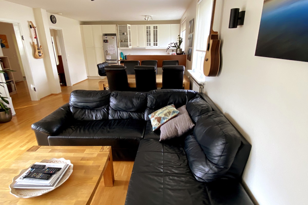 Het appartement is een deel van het wooncomplex in Sunnuhlíð, een landbouwgrond dicht bij de stad Akureyri. Het appartement is perfect voor vier volwassenen, twee stellen of gezinnen die alleen reizen. Gasten kunnen genieten van het prachtige uitzicht op Eyjafjörður en Akureyri. Extra kosten voor meer dan twee gasten zijn € 18 per gast per nacht.