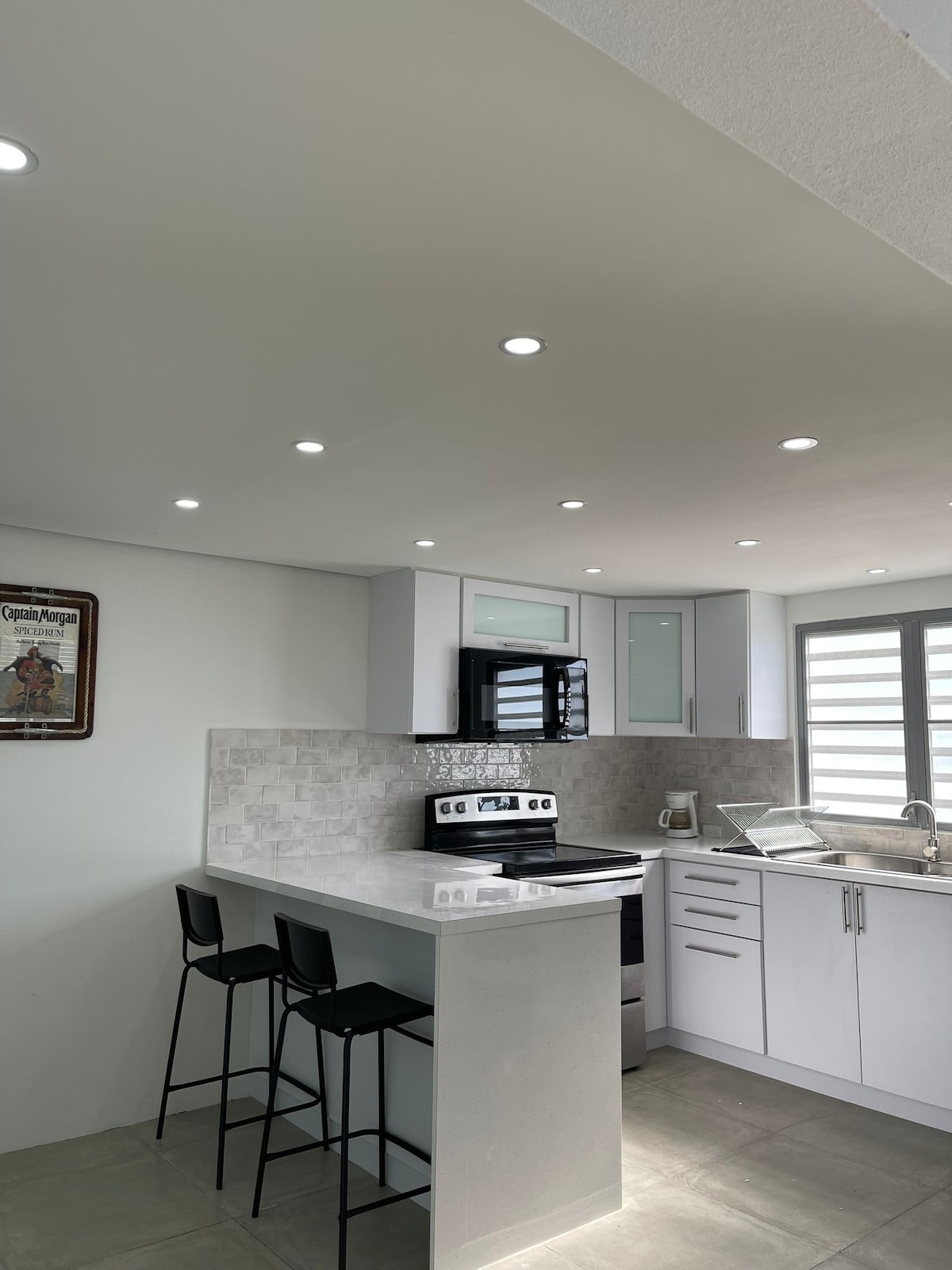 Luxe villa in het hart van de Poblado Boqueron in Cabo Rojo Op loopafstand van het strand, bars, bars, restaurants, winkels, winkels, supermarkten, kerken, geldautomaten, watersportactiviteiten en verhuur. De villa is volledig ingericht en uitgerust met alles wat je nodig hebt om van je vakantie te genieten. Een grote slaapkamer met queensize bed en een queensize slaapbank in de woonkamer. De villa heeft boiler, wasmachine en droger , handdoeken, beddengoed, airconditioning in alle ruimtes 2 - 55" HD-tv 's en wifi .