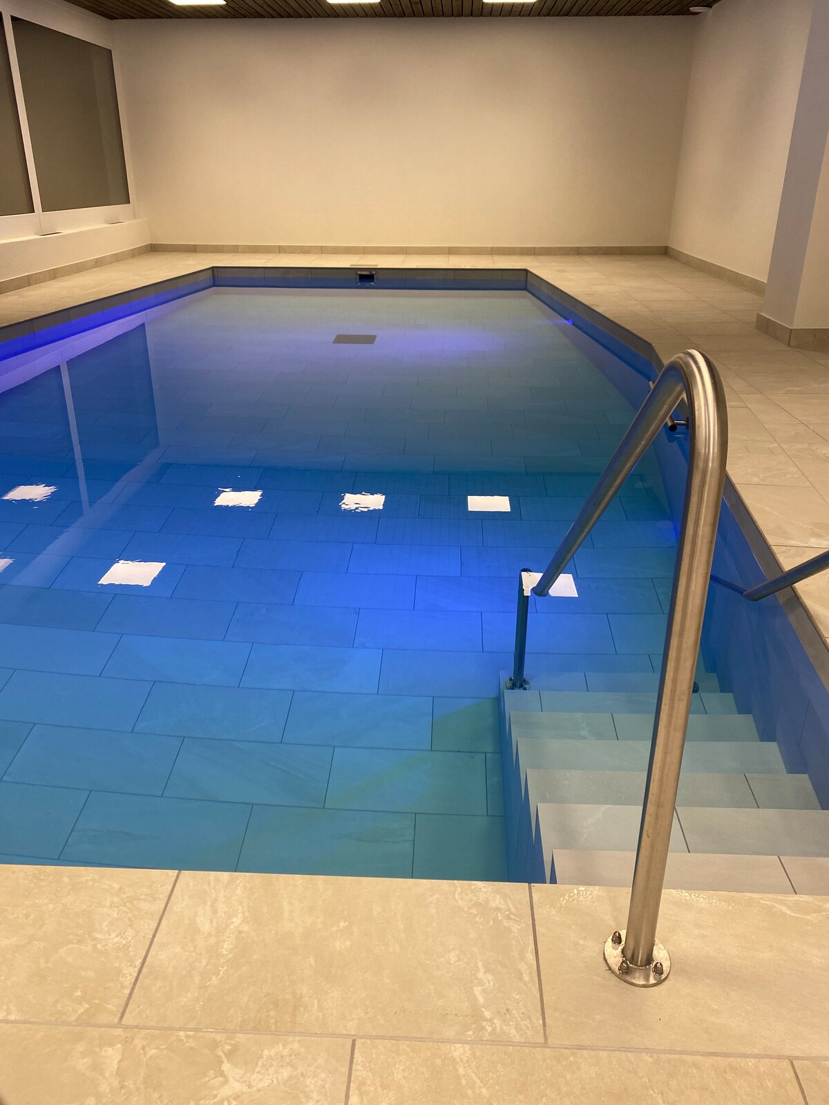 Panoramisch uitzicht met zwembad en sauna