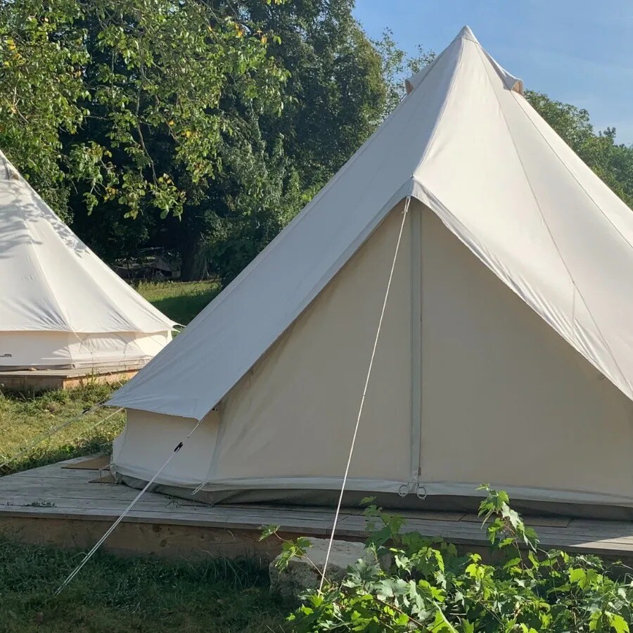 Luxe glamping Lotus Belle-tent in het serene Corrézien-platteland, ideaal voor stellen of kleine gezinnen. Op onze kleine camping met zes kampeerplaatsen biedt de tent een rustige, ontspannende ruimte met een comfortabel bed, beddengoed en een eigen keuken. Geniet van ons zwembad, de bar op het terrein en heerlijke pizza's, of word wakker met vogelgezang en verken nabijgelegen paden en dorpen. Ontspan in de rustige, privé natuurlijke omgeving voor een unieke boutique glamping ervaring met volledig comfort.