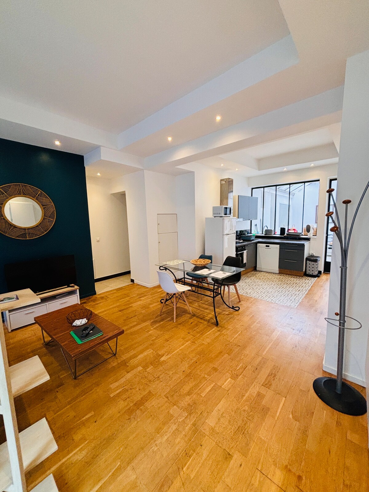 Loft 115 m² gerenoveerd ✔ Aan de voet van de Loire en het historische centrum Gratis ✔ parkeren rond ✔ Echte ingang ✔ Volledig uitgeruste open keuken en Nespresso Vertuo ✔ Ruime en lichte woonkamer: eettafel 8 personen, gezellige zithoek met piano en fauteuils Binnen ✔ schommel ✔ 3 slaapkamers: tweepersoonsbed 160 x 200, kledingopslag, bureau en jaloezie Gedeelde en ✔ privékantoren met ✔ Mezzanine Ethernet: leeshoek, Smart TV 65, uitschuifbaar bed ✔ Wasruimte ✔ 2 douches ✔ 2 WC