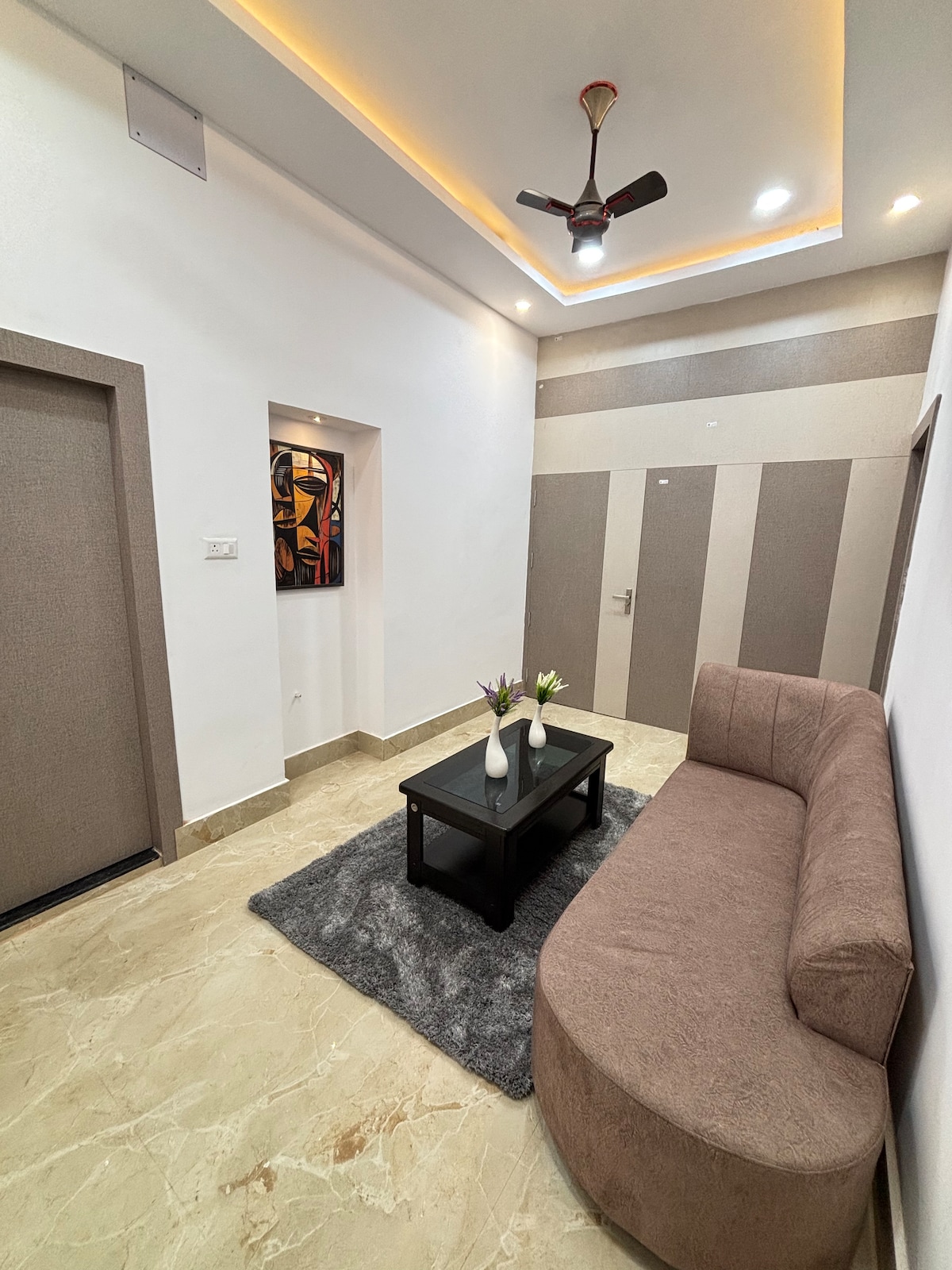 Neem het hele gezin mee naar deze geweldige plek met veel ruimte voor plezier. Je elegante retraite wacht op je in de Pearl of Varanasi. Deze gloednieuwe, moderne flat biedt een perfecte mix van comfort en stijl. Ontspan in een ruimte met twee kamers met airconditioning, een pluche kingsize bed, een smart-tv en alle voorzieningen voor een rustig verblijf. We kunnen ook helpen bij het regelen van een kok tegen extra kosten als iemand zelfgemaakte maaltijden nodig heeft.