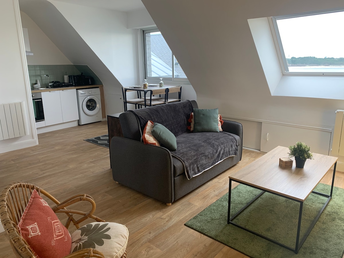 AAN ZEE voor deze charmante 27m2 T2 die op je wacht op de 2e verdieping van een kleine residentie. De uitzonderlijke locatie stelt je in staat om rustig te genieten van een adembenemend uitzicht! Je zult genieten van een eigen parkeerplaats. IDEAAL GELEGEN, alle voorzieningen zijn in directe nabijheid. De wilde kustlijn, prachtige stranden en wandelingen beginnen aan de voet van de accommodatie . Lees de hele advertentie voor modaliteiten en verwelkom je graag in Zuid-Bretagne!