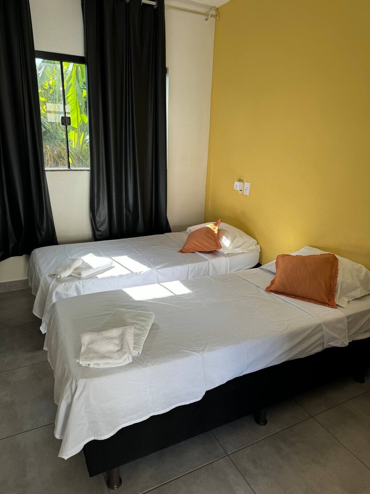 Moderne flat op een rustige locatie met een strategische locatie. Met nabijgelegen markt, apotheek en fitnessruimte š Zelf inchecken snel en praktisch: Het hele proces duurt minder dan vijf minuten, sneller dan een hotel! Hier heb je je eigen uitgeruste keuken, ideaal voor het bereiden van maaltijden met functionaliteit, comfort en vrijheid. De ruimte biedt: Wifi, tweepersoonsbed met beddengoed, badkamer, keuken met koelkast en magnetron, verduisteringsgordijn, tafel, stoelen. Onze exclusieve plek.
