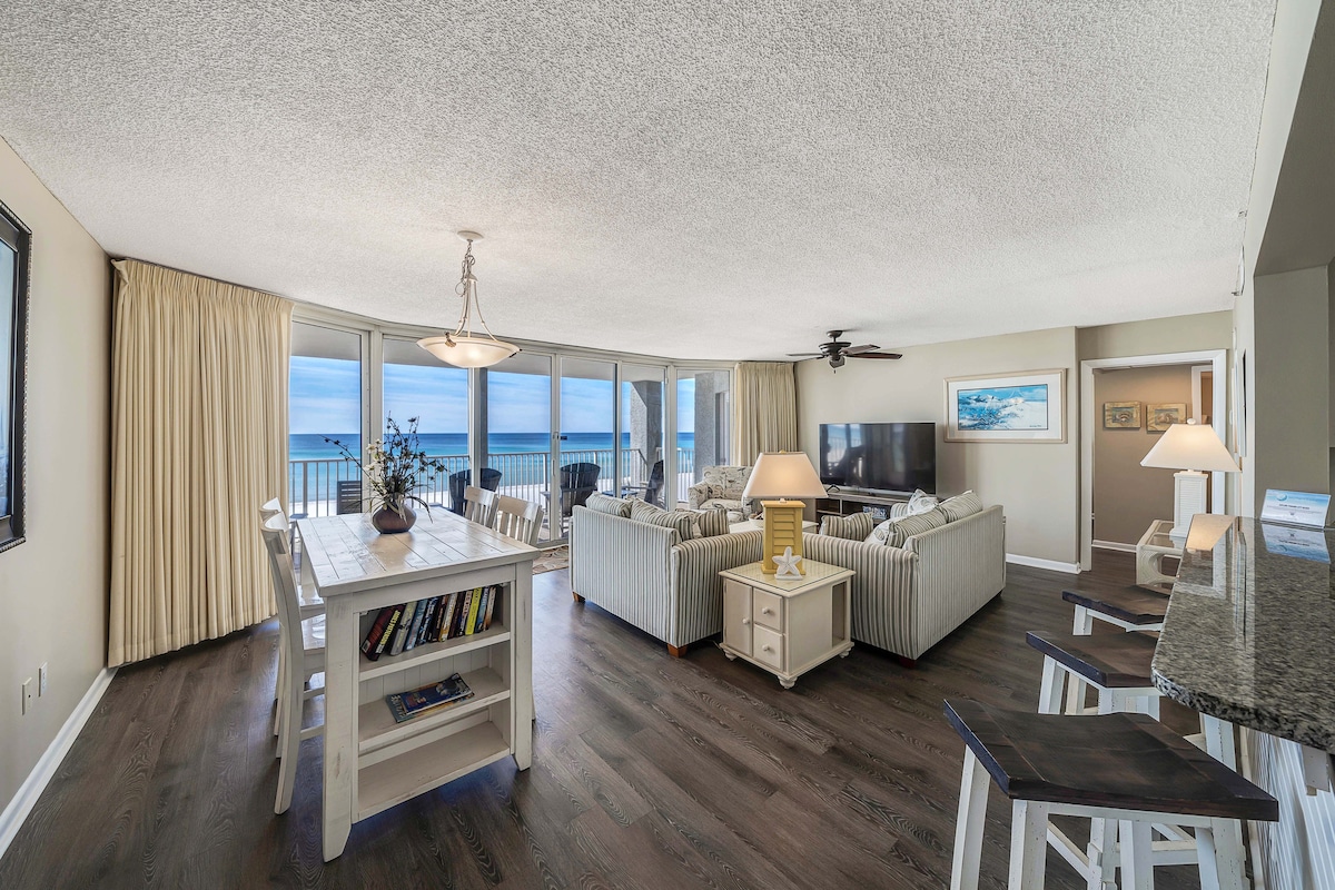Dit ruime appartement op de 3e verdieping biedt GRATIS strandstoelen en parasol heeft de BESTE plattegrond op het strand! Uitzicht op de Golf vanuit elke kamer. Long Beach biedt 2 (verwarmde) zwembaden, 3 bubbelbaden, een fitnessruimte en ligt op loopafstand van restaurants en attracties.