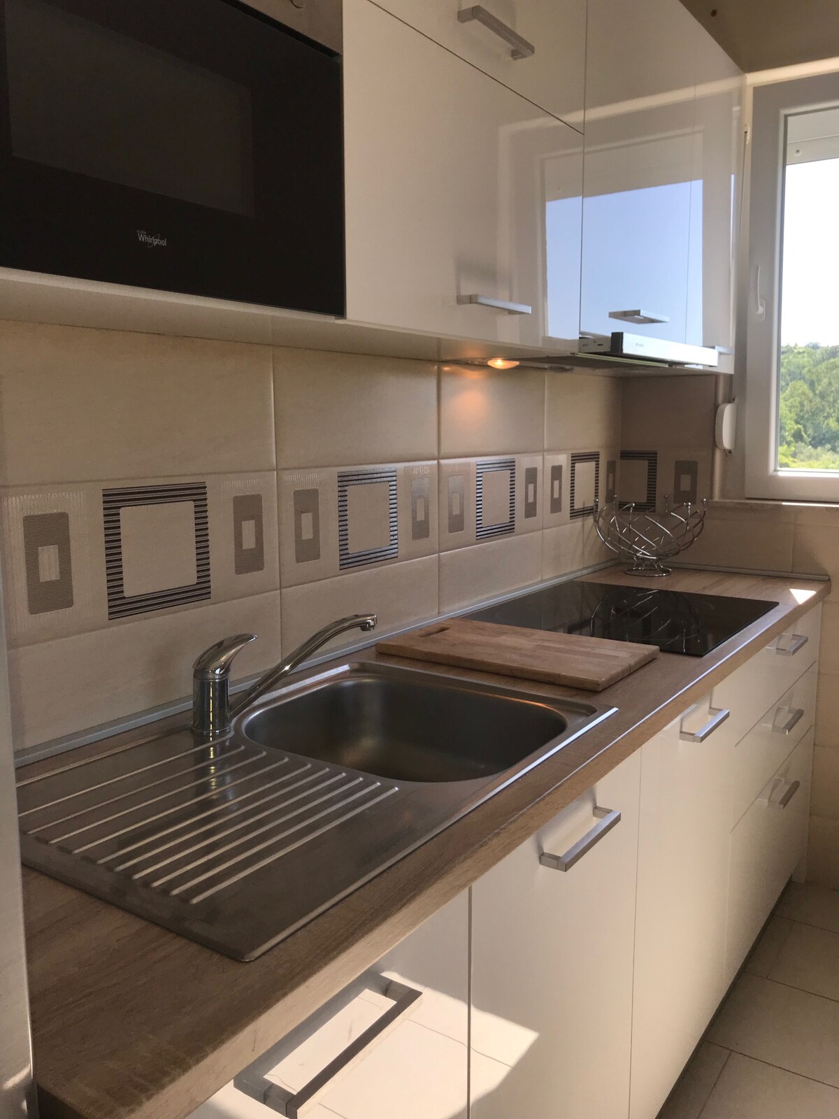 Our house is located in a peaceful green area. The apartment (for max five people) is on the ground floor, fully equipped and is great for families with kids or babies. You can also enjoy in a big yard. Walking distance to the nearest sandy beach is 3 - 4 min., port with promenade 8 min.; Ciganka, Sturič, Podšilo beach 20 min. The supermarket and post are 3 min by foot. With all the accessories we want to give our guests a perfect welcome.