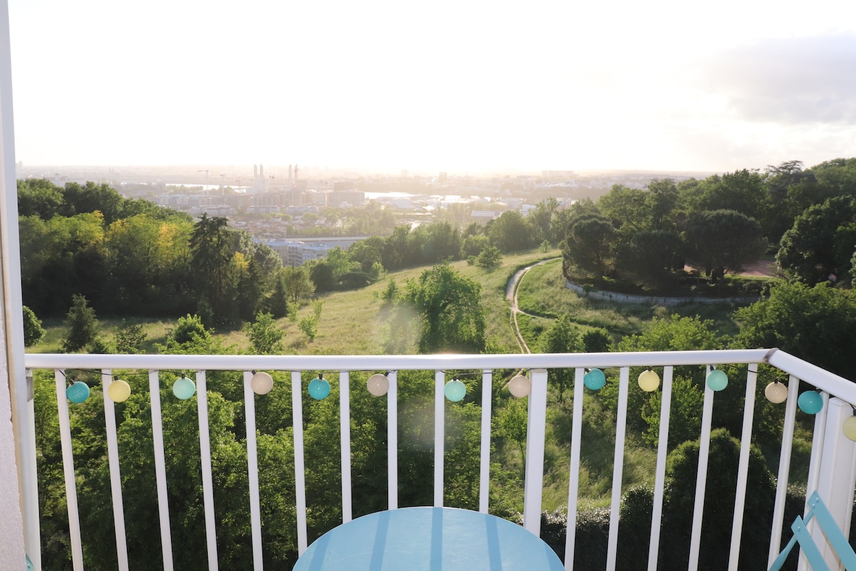 Ontspan in deze rustige en stijlvolle accommodatie, met uitzicht op een park en zodat u kunt genieten van een prachtig uitzicht op de Garonne, Bordeaux en zijn monumenten. Beveiligd parkeren is beschikbaar voor je gebruik. Ideaal gelegen om te genieten van zowel het centrum van Bordeaux bereikbaar per tram met een halte op 600 meter afstand, maar ook de Saint-Emilion wijngaard en de kastelen, snel bereikbaar per auto.