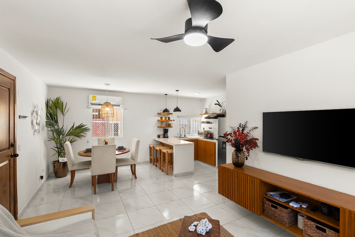 Nieuw modern appartement op slechts 5 minuten lopen van het strand. Verwarmd zwembad in resortstijl, jacuzzi, vuurplaats, fitnessruimte en spa. Twee eigen terrassen, volledig uitgeruste keuken, koffiezetapparaat, wasmachine/droger, snelle wifi en airconditioning in elke kamer. Strandspullen inbegrepen. 2 slaapkamers/2 badkamers + slaapbank (voor 5 personen). 24/7 beveiliging en privéparkeergelegenheid. Restaurant, OXXO en apotheek buiten. Costco op vijf minuten afstand. Voelt als een boetiekhotel met de privacy van thuis: perfect voor koppels, gezinnen of vrienden die op zoek zijn naar een stijlvolle en rustige Cabo-ontsnapping.
