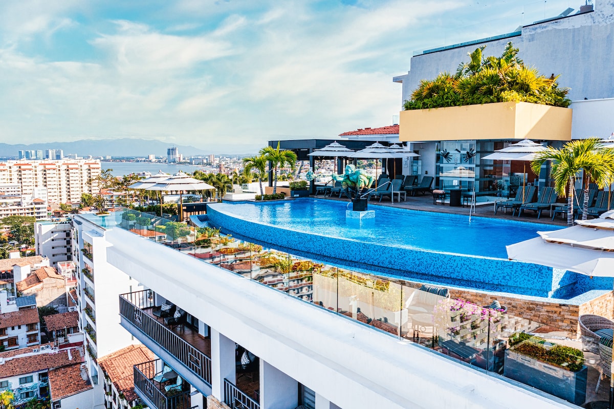 Ontdek een verborgen schat in het hart van de Romantische Zone met dit moderne condo in het nieuw strategisch gelegen Nomada-gebouw, het zwembad op het terras biedt een ongeëvenaard uitzicht op de oceaan en de baai. Je bevindt je op een steenworp afstand van een verscheidenheid aan restaurants, cafés en kunstgaleries, en twee blokken van het iconische strand en de pier van Los Muertos. Dompel jezelf onder in de perfecte mix van comfort, functionaliteit en adembenemend uitzicht!