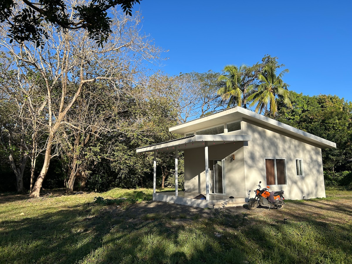 Kleine nieuwe bungalows in loftstijl op 1 km van Playa Negra. Privé en volledig uitgerust om comfortabel van je reis te genieten. We bevinden ons op een bevoorrechte locatie in de buurt van de mooiste stranden zoals Avellanas, Junquillal en Playa Negra (2 minuten met de auto), een van de beste golven in Costa Rica. Ook op loopafstand van restaurants en minimarkten. Het heeft snelle wifi, airconditioning, een uitgeruste keuken, een queensize bed, een eigen badkamer met warm water en een eigen terras. Gedeeld zwembad