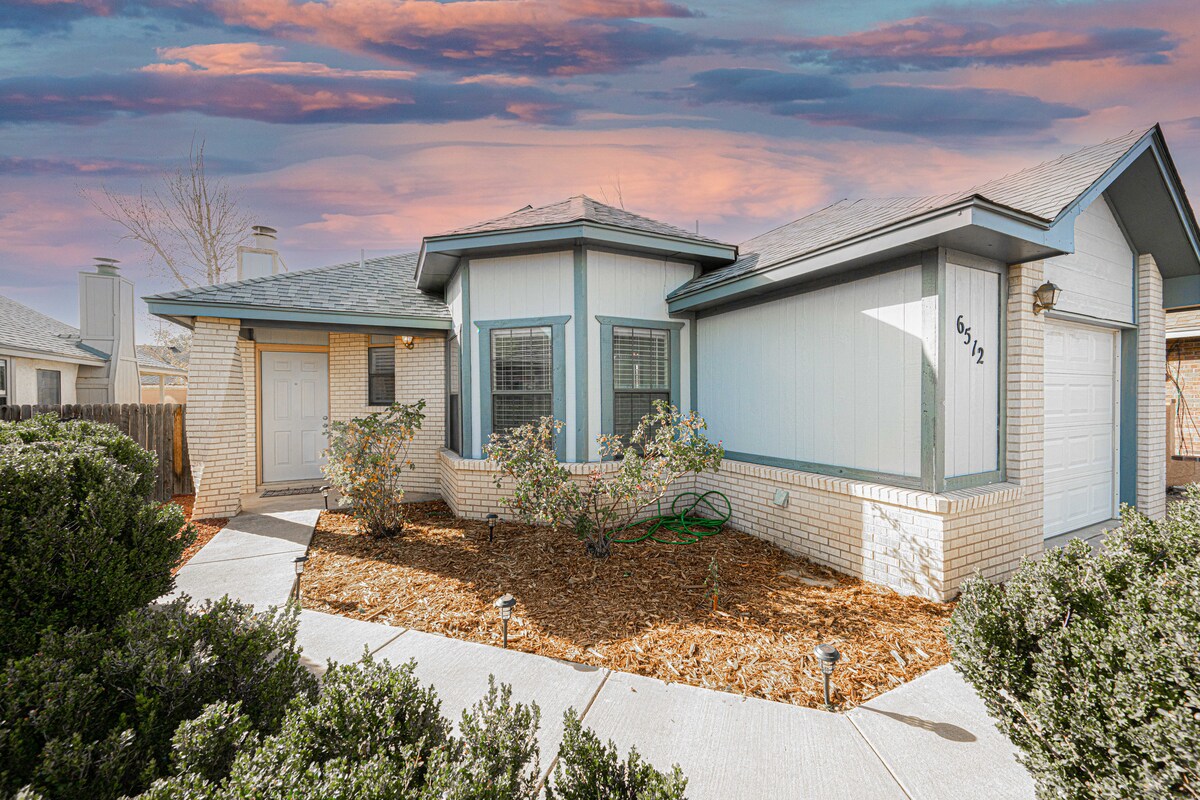 Ontspan en kom tot rust in deze rustige, stijlvolle ruimte. Onze gezellige woning is gelegen in een zeer gecentraliseerde omgeving van Albuquerque met een verscheidenheid aan mogelijkheden, zoals coffeeshops, pubs, winkelcentra, restaurants, ziekenhuizen, wellnesscentra en prachtige parken. Toegang voor gasten Het hele huis met drie slaapkamers en twee badkamers. Een queensize bed, een tweepersoonsbed en een tweepersoonsbed. Kantoorruimtes in een van de kamers. Snelle wifi met Netflix, Hulu, prime video en een ps5. Met een oase van een achtertuin.