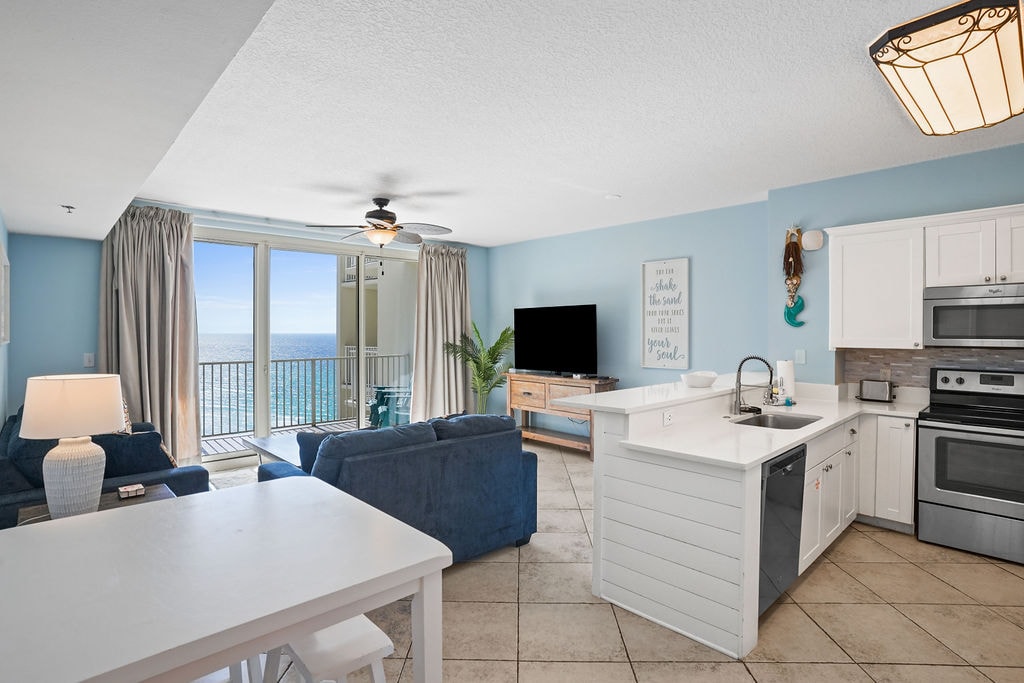 Dit prachtige appartement van 751 SF op de 10e verdieping van Sunbird Resort, een omheinde gemeenschap met 24/7 beveiliging. De open indeling biedt een adembenemend panoramisch uitzicht op het suikerwitte zand en het kristalheldere water, perfect voor het creëren van onvergetelijke vakantieherinneringen. Het resort beschikt over een selectie van voorzieningen, waaronder 3 zwembaden, zonneterrassen, picknickplaatsen met grills en een 24/7 fitnesscentrum. Parkeren is gratis met een eenmalige registratie van $ 30 en armbanden kosten $ 8 per persoon.