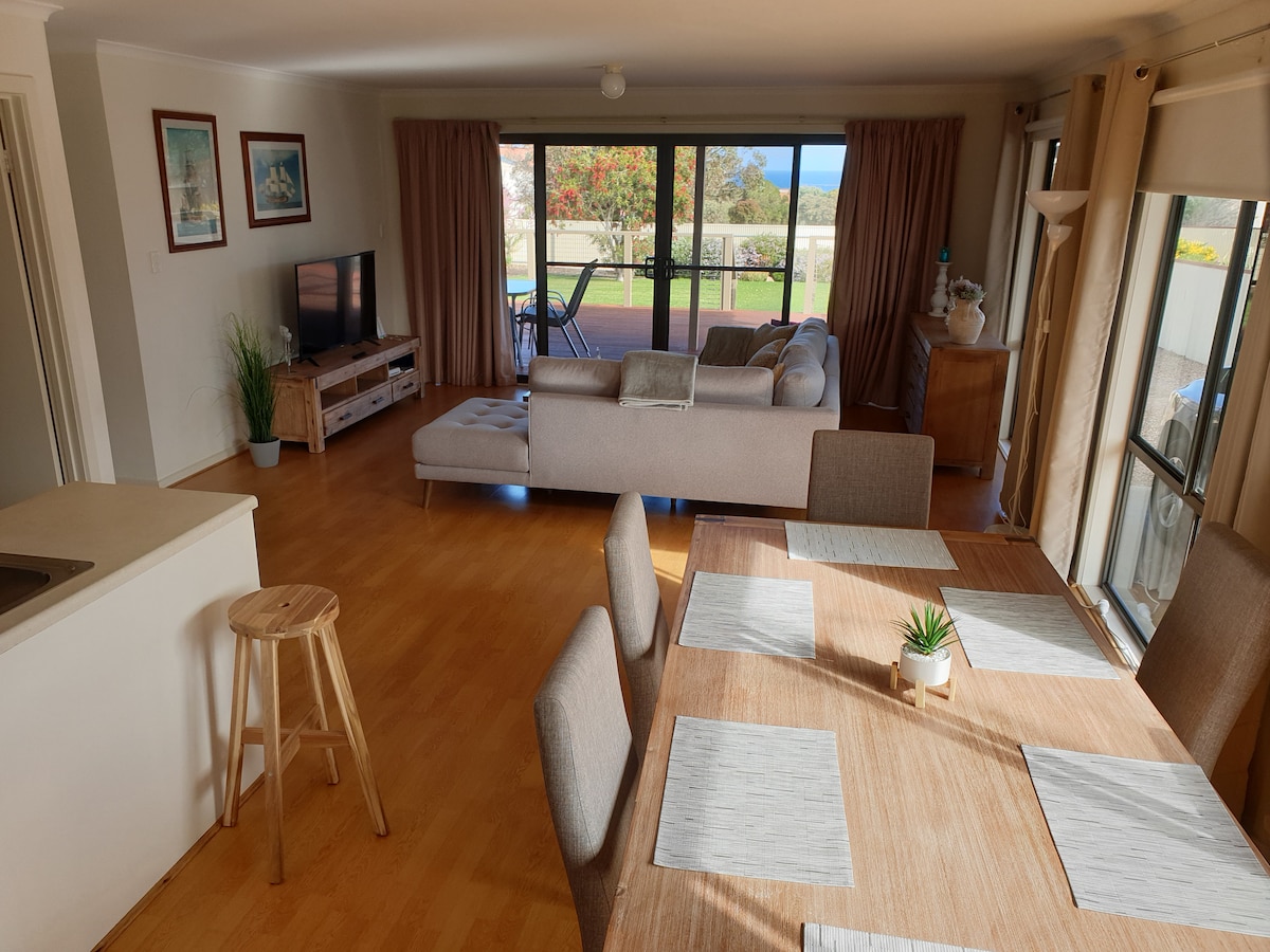Bij aankomst kunt u ontspannen op het grote terras met uitzicht op zee, terwijl u een glas wijn of een koffie drinkt. Een woning die nieuw is ingericht met onbeperkte WIFI voor je gemak en een open woonkamer. Meer dan genoeg ruimte in de achtertuin voor de kinderen om te spelen en parkeergelegenheid Gewoon een sprong, overslaan en springen naar het lokale strand. Coles en Aldi liggen iets verderop en de stad Victor ligt op slechts 5 minuten rijden van lokale cafés en restaurants . Middleton ligt op tien minuten rijden, net als Horseshoe Bay.