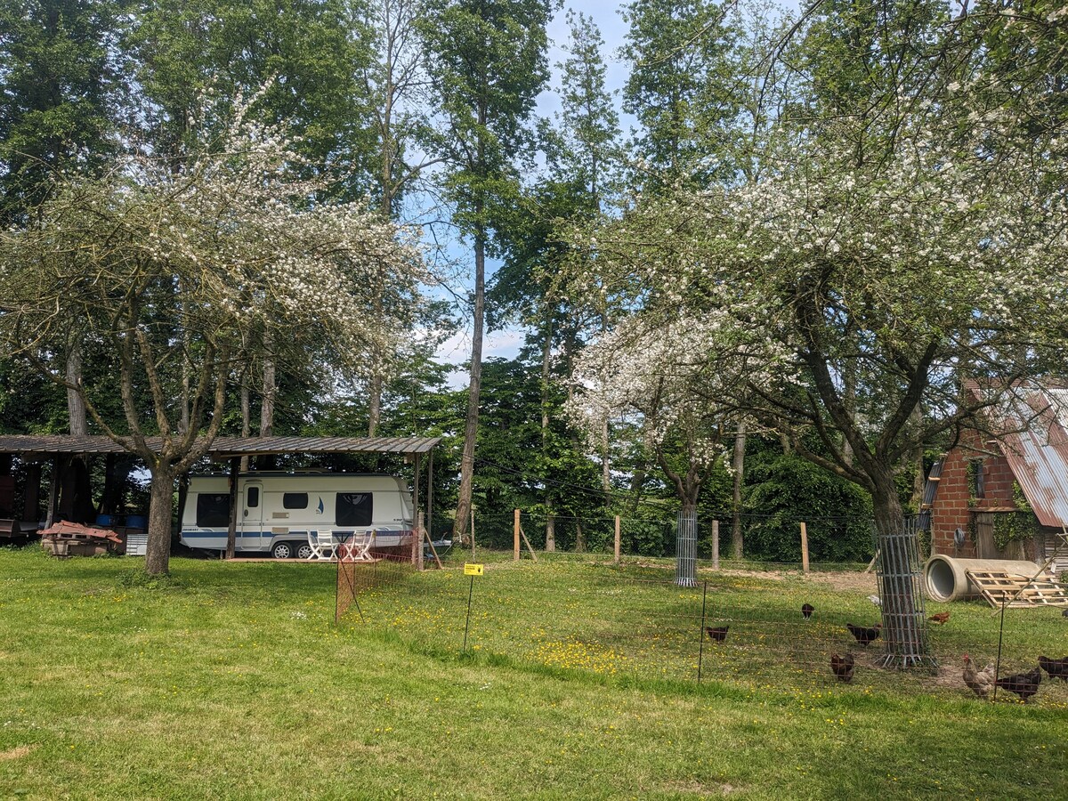 We verwelkomen je bij onze voormalige cider van 3,5 hectare. Rustieke en eenvoudige plek, loop op het terrein. Barbecueplaats, schommel... Huisdieren toegestaan onder toezicht. Je kunt onze kippen, dwerggeit, kalkoenen, parelhoenders, koeien, eenden zien... U krijgt een grote caravan onder dekking. Het bestaat uit een slaapkamer met een 140 x 190 tweepersoonsbed, een kleine keuken met 3 gashaarden, een converteerbare woonkamer zonder gordijnen voor een volwassene of twee kinderen.