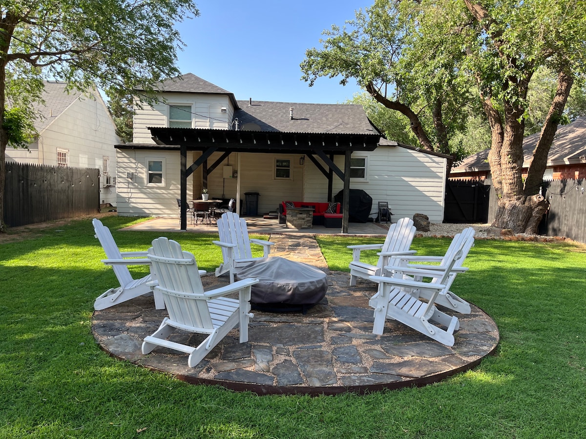 Hier heb je alles wat je nodig hebt voor een echte Lubbock-ervaring in de beroemde Tech Terrace buurt naast Texas Tech University. Lubbock 's beste lokale pizza, koffie en bier liggen allemaal op slechts één blok afstand bij J&B Coffee, Capital Pizza en Good Line Brewery! Of u verblijft thuis met een enorme achtertuin, pergola, vuurplaats, prachtige meubels en zelfs speelgoed voor de kleintjes. Het is uitstekend voor gezinnen, groepen of gewoon een voorproefje van het beste wat Lubbock te bieden heeft. We HOUDEN VAN Lubbock, en jij binnenkort ook!