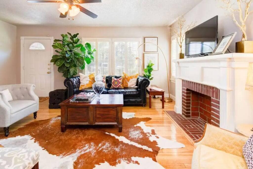 Deze Boho-thema-uitje is ideaal voor gezinnen en groepsverblijven! Met een complete keuken, snelle wifi, twee woonruimtes en een 65-inch smart-tv (gratis Netflix, Hulu, Amazon). Onlangs bijgewerkt in de hele woning met een moderne en functionele sfeer ontworpen voor gasten om te ontspannen en tot rust te komen. Mooie achtertuin met grote bomen, volledig omheinde gras tuin, overdekte patio aan de achterkant en buitenspellen, perfect voor het ontvangen van gasten. We kijken ernaar uit om je verblijf te organiseren!