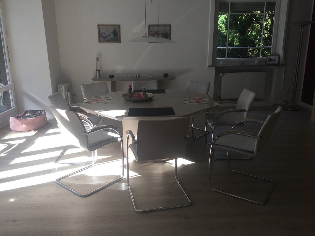 Geniet van de rustige groene idylle, in ons gezellige afsluitbare appartement, met eigen trap. Ontspan in een van de rustige kamers in het goed uitgeruste appartement op de bovenste verdieping met eigen badkamer en keuken-woonkamer. Inclusief beddengoed, veel handdoeken, toiletpapier, kruiden, thee, koffie en nog veel meer. Ideaal voor monteurs snelle vervoersverbinding naar de A7 richting Hamburg/ Kiel Veel ruimte voor je voertuigen Weekkorting 25%, maandkorting 40%