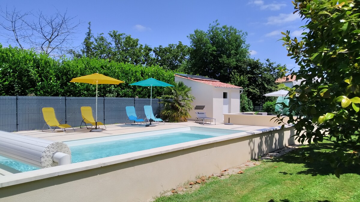 In het hart van de driehoek Royan-Saintes-Rochefort, ontdek een rustige landelijke oase op slechts 25 km van de stranden. Dit ruime huisje van 110 m² ligt op een 19e-eeuws wijngaard van 2 hectare. Geniet van je eigen terras en afgesloten tuin. Neem van half april tot begin oktober een duik in het verwarmde zoutwaterzwembad van 27 °C, dat je met slechts twee andere gasten deelt. Een waar paradijs voor liefhebbers van natuur en rust.