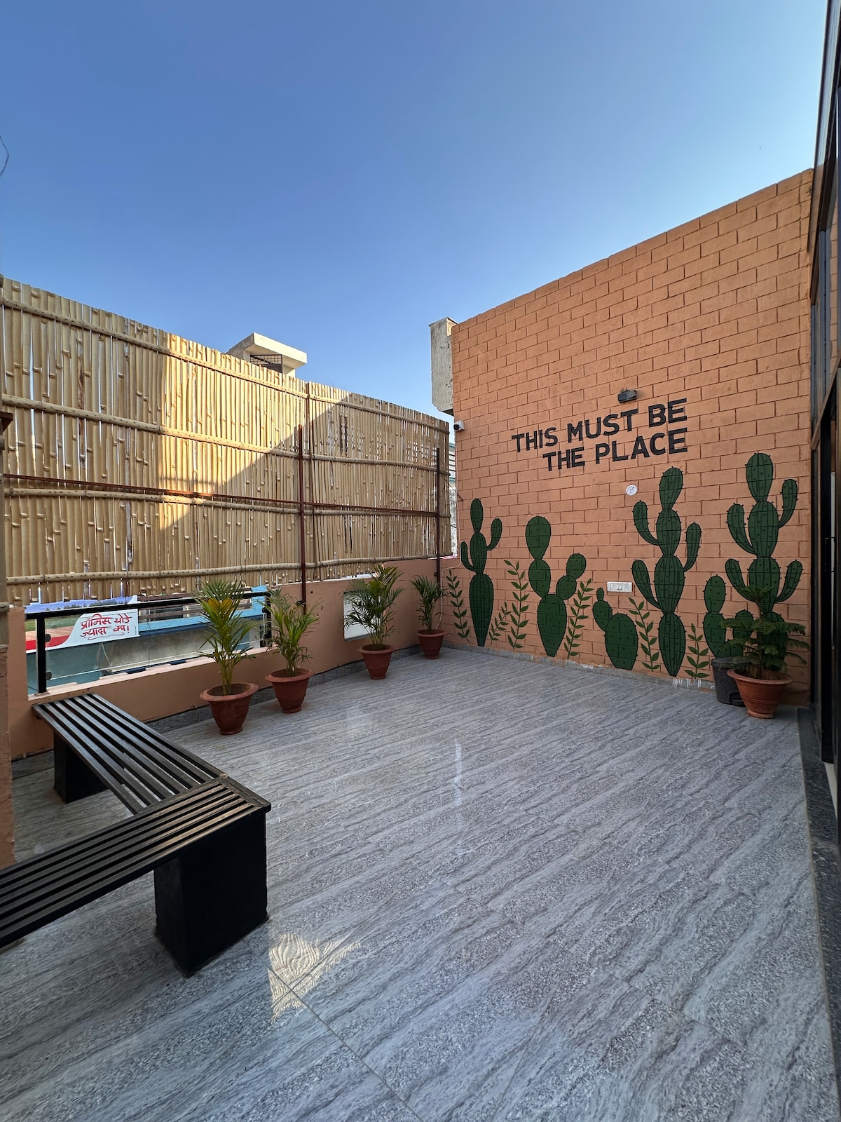 Welkom in ons gezellige penthouse op de tweede etage, met eigen ingang en een charmante patio. De woning beschikt over 2 slaapkamers met airconditioning, elk met een kingsize bed, 2 badkamers (een aangrenzende, een in de woonkamer), een keuken met RO-waterfilter en een kleine gemeenschappelijke ruimte met een koelkast. High-speed Airtel WiFi en een bureau zijn ook aanwezig. Let op: als je voor 1-2 gasten reserveert, blijven 1 slaapkamer en badkamer gesloten voor een meer op maat gemaakte ervaring.