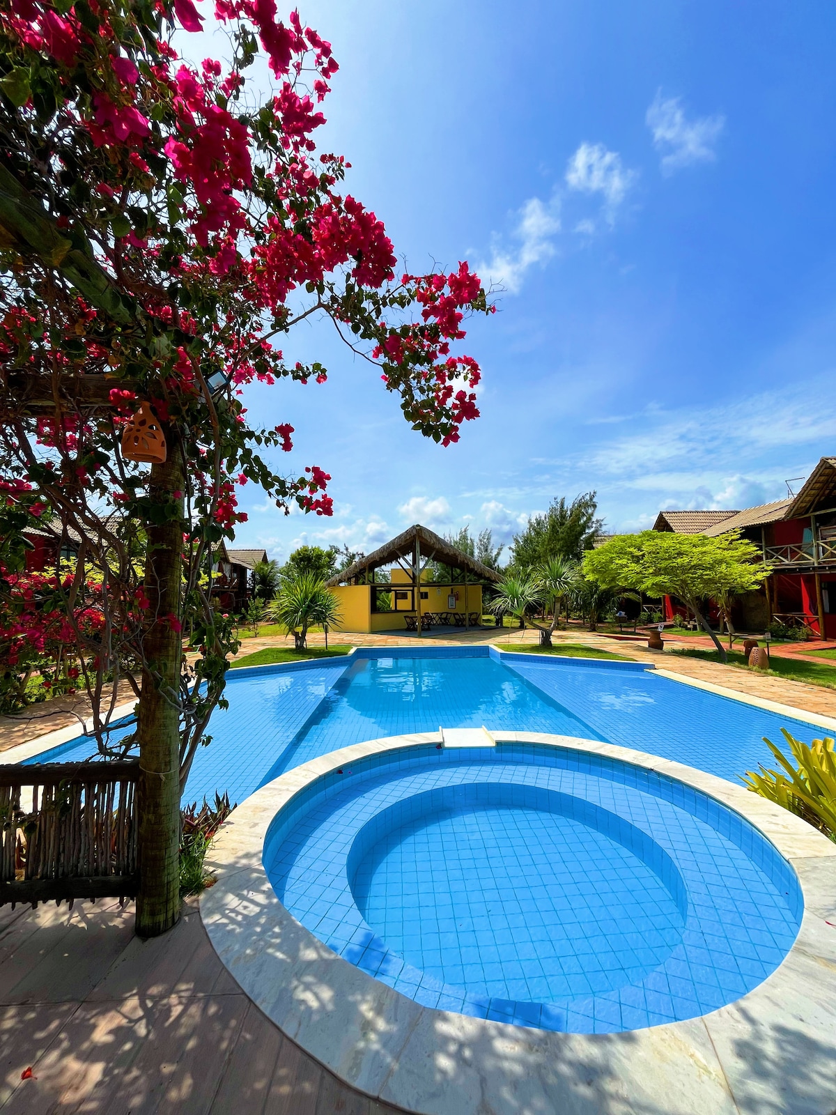 Viva dias especiais no Chalé 801, um refúgio charmoso na Praia do Coqueiro, em Luís Correia – PI. Com fachada rústica, varanda ampla com rede e vista encantadora para a piscina e o jardim, o chalé oferece o clima ideal de descanso e tranquilidade. A cozinha completa, a sala iluminada e o quarto climatizado tornam a estadia confortável e prática. É perfeito para quem deseja relaxar, aproveitar a brisa do litoral e viver momentos inesquecíveis em um ambiente acolhedor e bem cuidado.