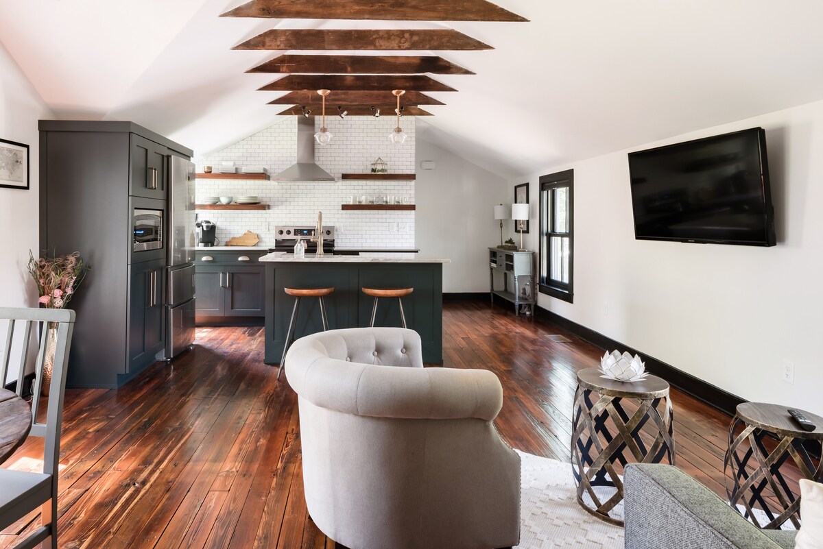 Geselecteerd door Architectural Digest als beste Airbnb in Kentucky. Zak weg in de afgeronde, gestreepte fauteuil onder zichtbare houten balken in een karakteristiek toevluchtsoord met een minimale, moderne stijl. Deze historische ruimte contrasteert met luxe details, waaronder het bad van 2 meter met schuiframen en een schuifdeur. Dit volledig ingerichte appartement is perfect voor een weekendje weg of voor korte tot middelgrote verhuur als een executive appartement. Het historische pand is liefdevol gerenoveerd als een luxe appartement met high-end afwerkingen met behoud van het historische karakter van zijn verleden als koetshuis. Je komt het appartement binnen via een gang met een speciale wasmachine en droger. Boven vind je een grote woon-/werkruimte, een prachtige keuken met gloednieuwe hoogwaardige apparaten en een 50inch 4K smart-tv. De schuifdeur scheidt de slaapkamer, waar u ook een grote inloopkast, een marmeren badkamer met een 6 voet badkuip en een gloednieuwe queen-size Tuft en Needle matras. We ontmoeten onze gasten en oriënteren ze naar het huis en de buurt, of bieden zelf inchecken, afhankelijk van de voorkeur. Voor de rest van je verblijf zijn we in de buurt voor eventuele extra behoeften. Cherokee Triangle is een van de meest historische wijken in Louisville, gebouwd aan het einde van de 19e eeuw en onderdeel van het grotere Highlands gebied. De met bomen omzoomde straten liggen op een korte wandeling van de restaurants, bars en boetieks aan Bardstown Road. Je hebt hier geen auto nodig - alles ligt op korte loopafstand. Parken, restaurants, winkels, supermarkten zijn allemaal binnen 5 minuten lopen. Het centrum of Churchill Downs liggen op 5-10 minuten rijden. Parkeren op straat is mogelijk.