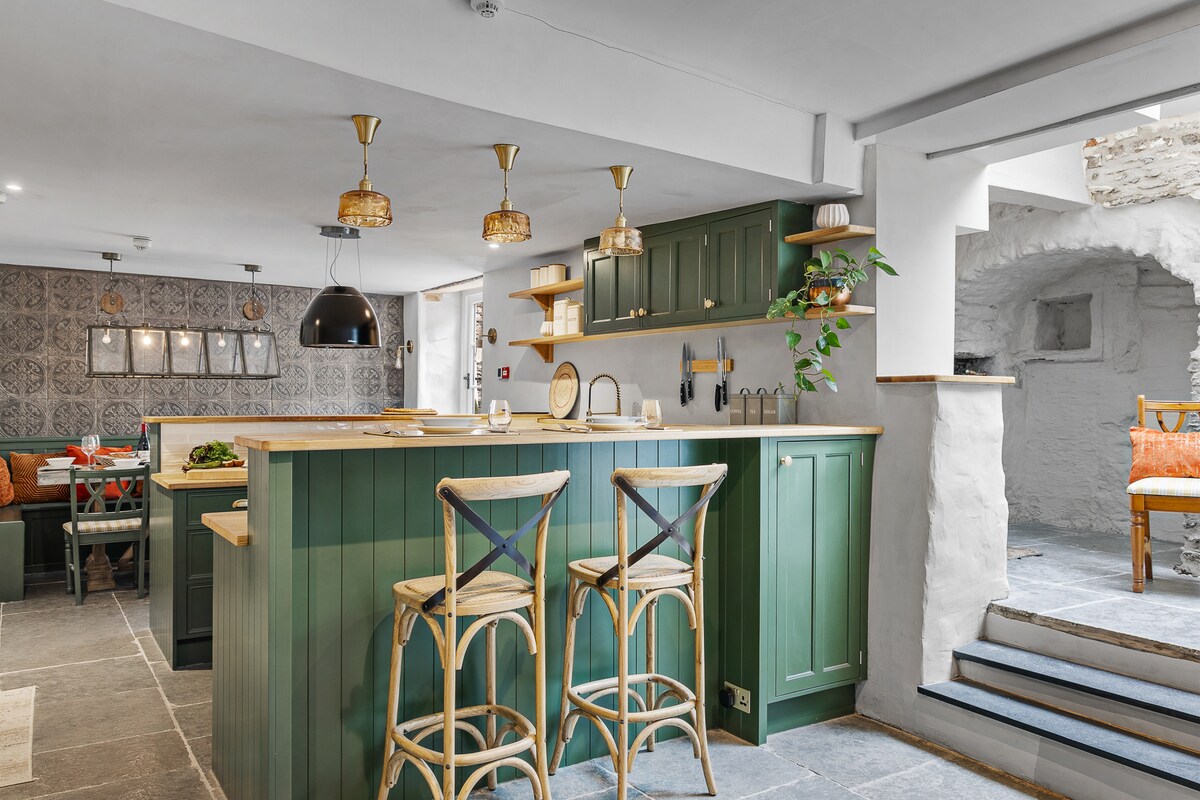 Een rustige, diep luxe ruimte om opnieuw te laden en opnieuw te verbinden. De Shippon is een zorgvuldig verbouwde koeienstal met verwarmde, gepolijste betonnen vloeren, zacht gebogen diepgroene muren, met de hand gebouwde keuken, warm verlichte leeshoekjes en natuurlijke materialen. Wollen dekens, veren bank, antieke Scandinavische houtkachel, kingsize bed met Frans beddengoed en dons, watervaldouche en de zachtste handdoeken. Ons slaperige Devon gehucht wordt alleen 's nachts verlicht door sterren. Je kunt misschien beter slapen dan in jaren.