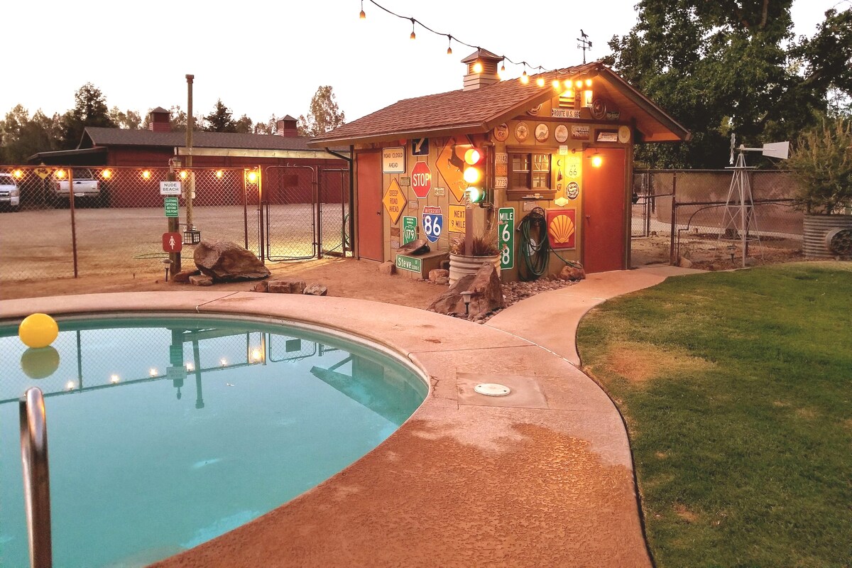 Geniet van de RV 'camping' -levensstijl in deze privéboerderij op het platteland. Neem een duik in het zwembad, neem een kampvuur of ga zitten en geniet van de zonsondergang en de sterren. De camper is gelegen op een eigen 'camping' op ons terrein van 3 hectare. Je bent slechts ongeveer vijf minuten verwijderd van de stad en restaurants. Je kampeert en kunt genieten van de privéruimte buiten de camper. Voel je vrij om vrij rond te dwalen en te genieten van het landschap. Steek de BBQ (Traeger & Blackstone Grill) aan en geniet van het zwembad!