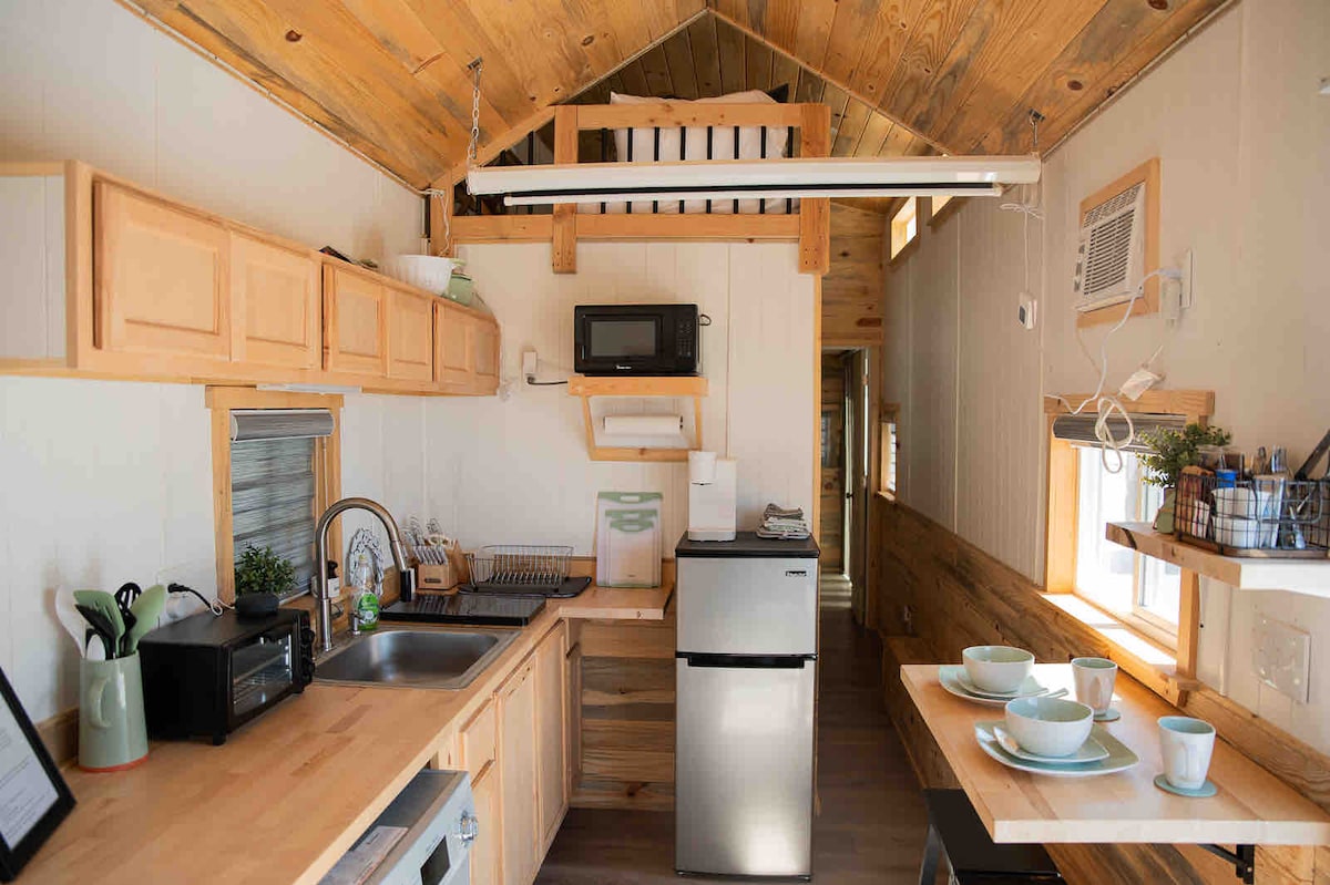 Dit huis van 250 vierkante meter ligt in Rexburg, Idaho 's enige kleine huisgemeenschap, en biedt snelle toegang tot lokale favorieten: Big Jud' s Burgers, The White Sparrow Country Store, Heise Hot Springs en Zip Lining, Kelly Canyon Ski Resort en Yellowstone Bear World. Het ligt op slechts 15 minuten van BYU Idaho en op anderhalf uur van Yellowstone National Park. Inbegrepen in je verblijf is een wasmachine/droogcombinatie, een projector, Starlink WiFi en meer. Dit kleine huis is misschien klein, maar geeft je een onvergetelijke ervaring!
