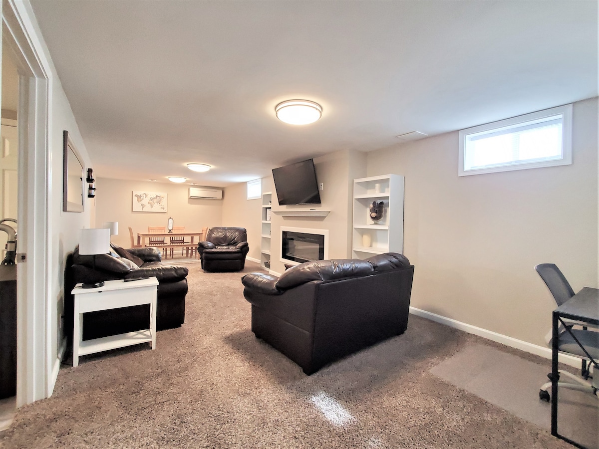 Welkom! Dit onlangs gerenoveerde kelderappartement is gezellig en uitnodigend. Je zult genieten van de gemakkelijke toegang. Het ligt dicht bij de snelweg en ligt aan een rustige doodlopende straat. Het ligt op korte loopafstand van het park en de winkels. Het is volledig uitgerust met een smart-tv, wifi, een bureau, nieuwe luxe apparaten, traagschuimmatrassen en nog veel meer. De keuken is van alle benodigdheden voorzien van borden, potten en pannen. Deze woning heeft tal van voorzieningen voor een kort of lang verblijf. Af en toe zijn voetstappen te horen vanaf de bovenwoning.