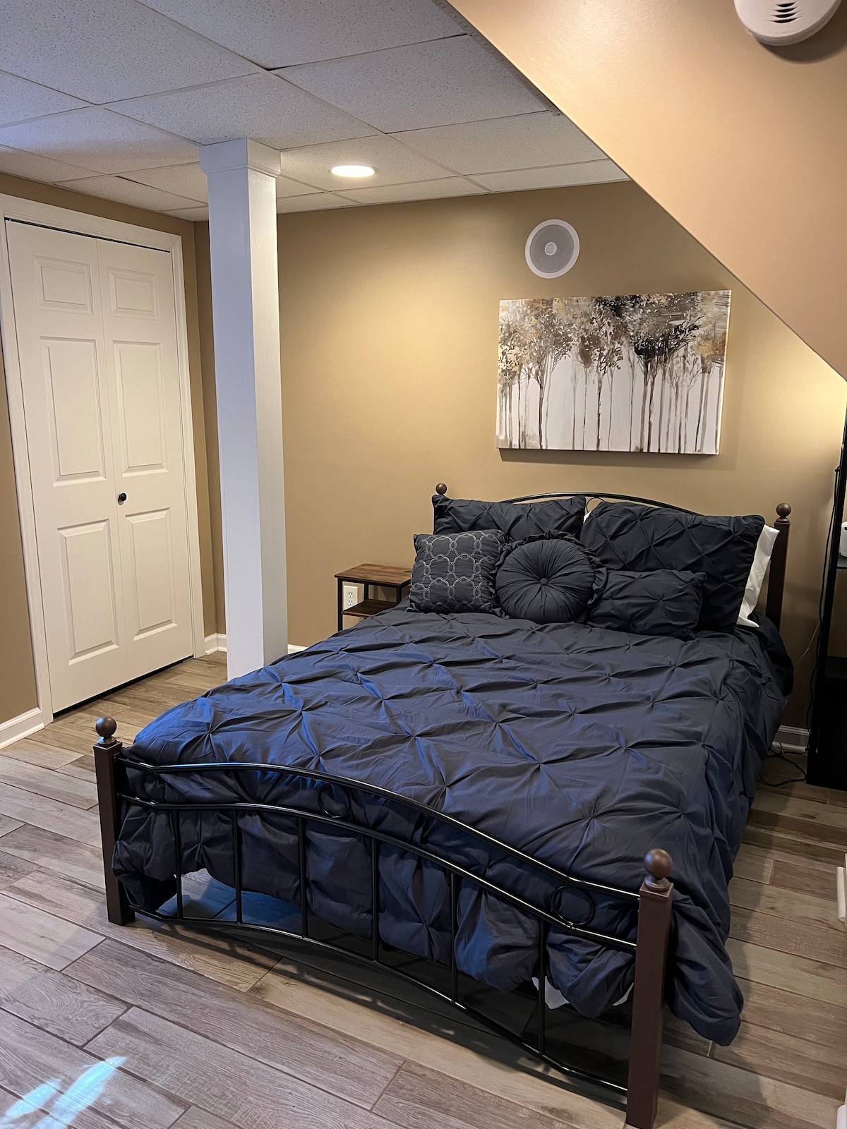 We hebben onlangs de renovatie van ons huis voltooid, met een schattige, gezellige gastensuite met één slaapkamer. Gasten hebben toegang tot een eigen ingang via hun eigen terras van 16 x 24 voet. De suite beschikt over een slaapkamer met verduisteringsgordijnen, een geluidsmachine, badkamer met een bad/douchecombinatie, kitchenette (grote koelkast, wastafel, vaatwasser, inductiekookplaten, broodroosteroven, magnetron), eettafel en een woonkamer met een bank, leeshoek en tv.