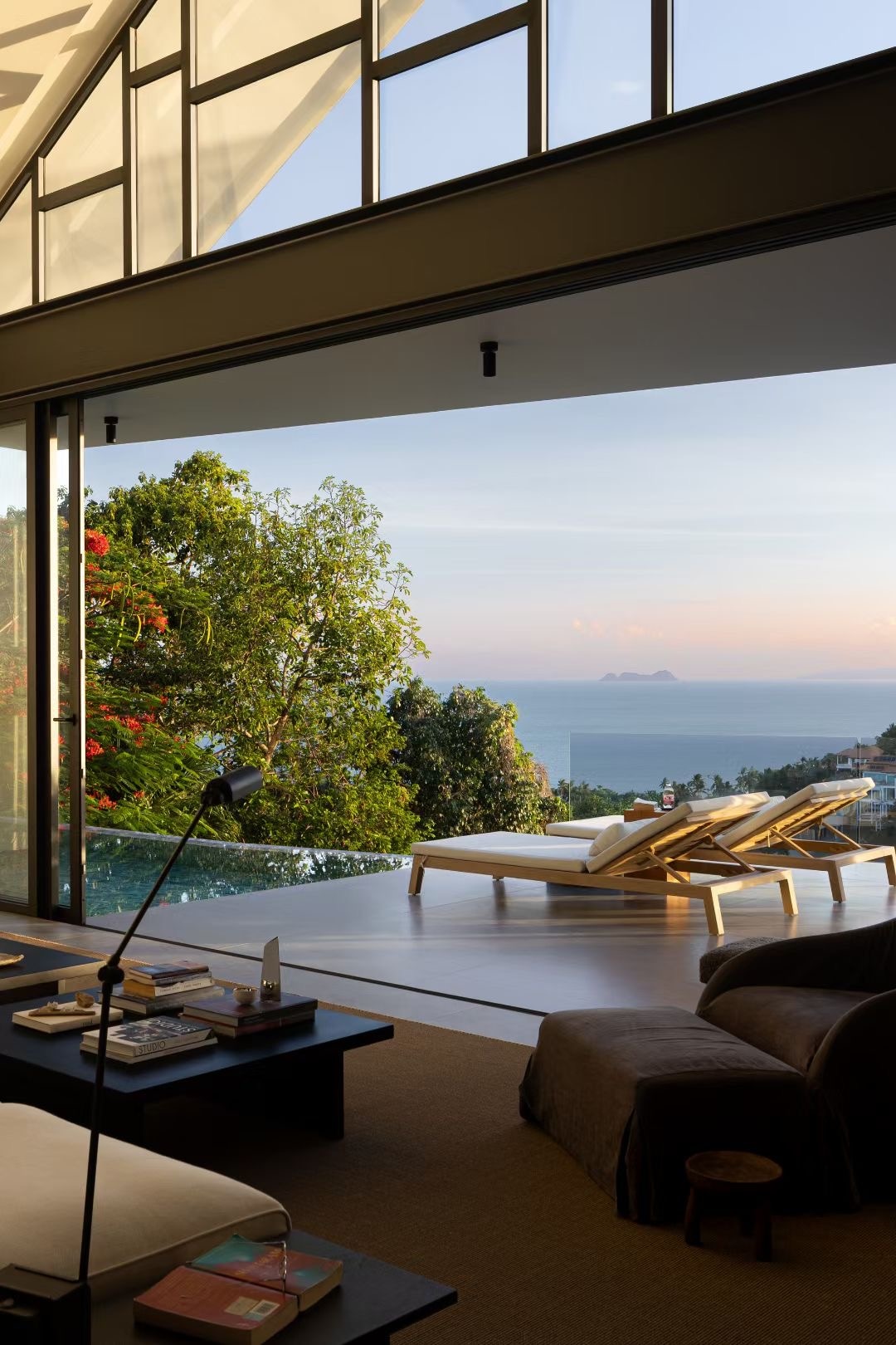 Magazine-Living: Ontdek luxe en kunst in deze villa met 3 verdiepingen en 800 m ² met een woonkamer van 100 m² en een buitentuin van 200 m². De kamerhoge ramen bieden een prachtig uitzicht op de vallei en de zee. Geniet van 5 ruime slaapkamers met elk een kingsize bed, een eigen badkamer en beddengoed van hotelkwaliteit. Ontspan in het zoutwaterzwembad van 4x8 m, train in de fitnessruimte/Thaise boksruimte of ontspan in de theesalon/bibliotheek met Chinese en Japanse invloeden. Een perfecte mix van eigentijds design, comfort en natuurlijke schoonheid wacht op je.