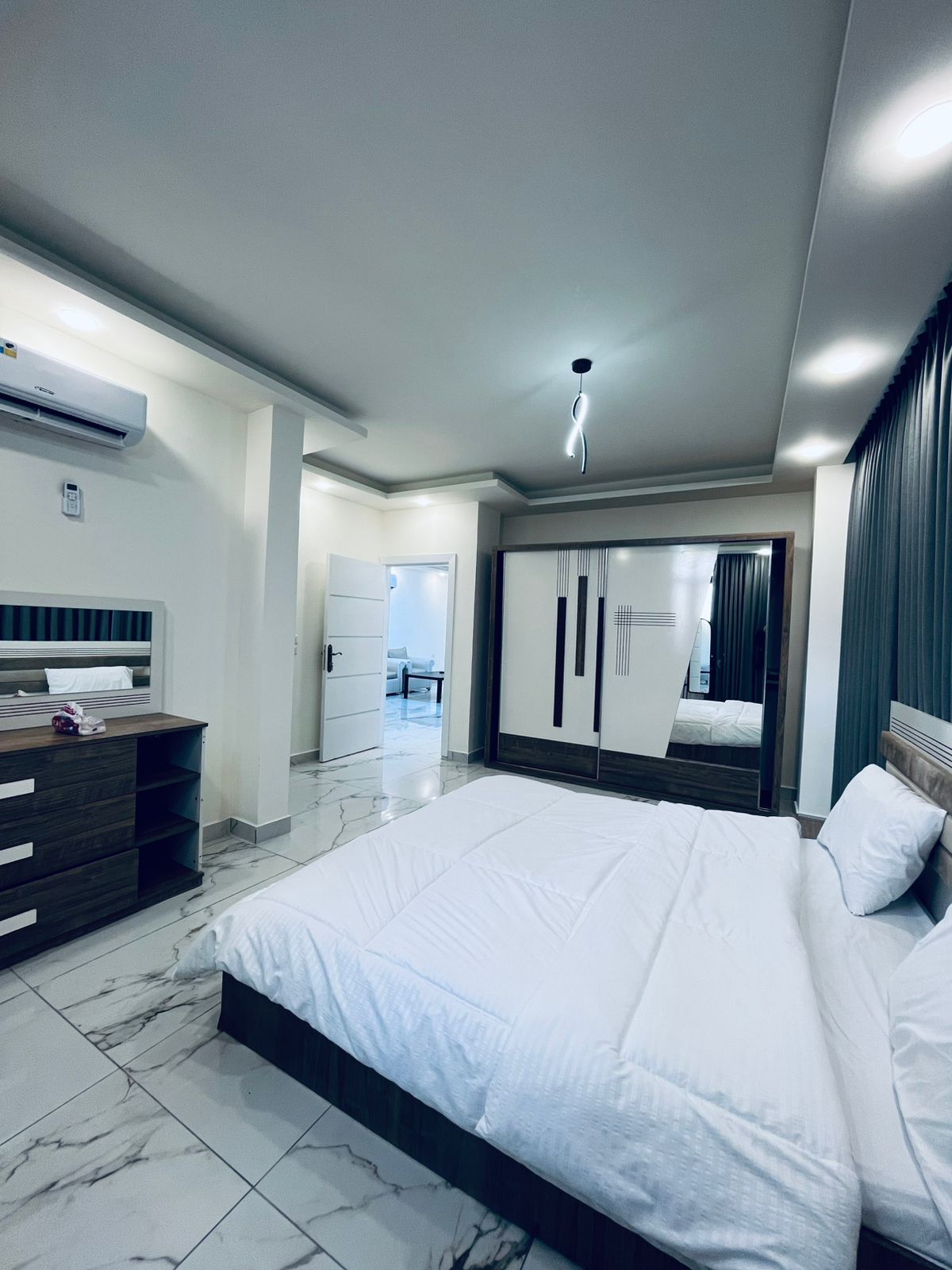 Enjoy a stylish experience at this centrally-located place in the heart of AL Mafraq City. Fully furnished apartments combine modern design with premium comfort, offering spacious apartments, high-end finishes, and all essential amenities. Available in various sizes to suit your needs. Perfect for short or long stays, whether for business or leisure. Enjoy privacy, style, and convenience in one of Mafraq’s finest residences.