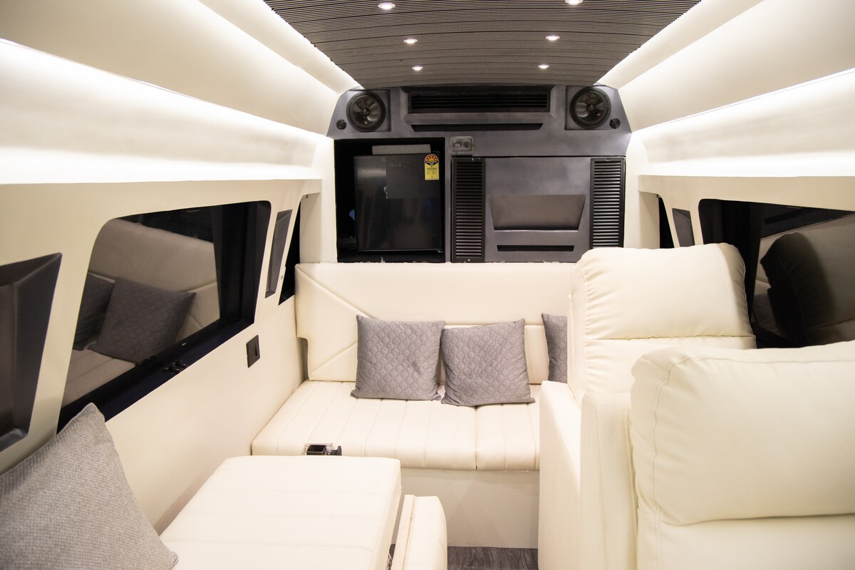 Twilight Chaser is je ultieme luxe camper, ontworpen voor degenen die op zoek zijn naar avontuur zonder in te boeten aan comfort. Met ruime zitplaatsen, panoramisch zonnepanoramisch uitzicht, een volledig uitgeruste kitchenette, gezellige slaapvertrekken en moderne voorzieningen zoals snelle wifi, smart-tv en een Bluetooth-geluidssysteem, transformeert Twilight Chaser elke roadtrip in een onvergetelijke reis. Of het nu een weekendje weg is of een lange ontsnapping, laat Twilight Chaser je thuis op wielen zijn.