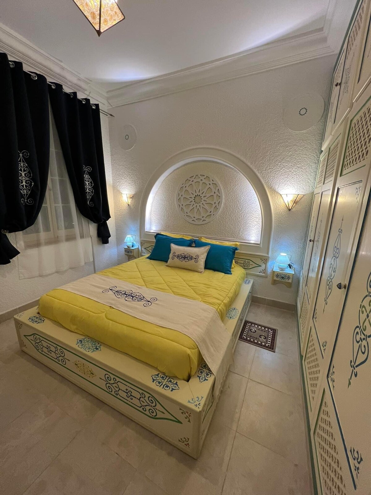 Welkom bij je toegangspoort aan het strand in Mahdia! Word wakker met golven die breken en de zon die op het water danst. Ons gezellige huis is een toevluchtsoord waar je kunt ontspannen, verkennen en blijvende herinneringen kunt creëren. Stap binnen en voel de stress wegsmelten met een prachtig uitzicht op de oceaan. Gelegen in de buurt van toeristisch gebied en op slechts een steenworp afstand van de beste bezienswaardigheden van Mahdia, of het nu zandstranden, historische bezienswaardigheden of bruisende markten is. Doe alsof je thuis bent in ons stukje paradijs. We kunnen niet wachten om je te verwelkomen!