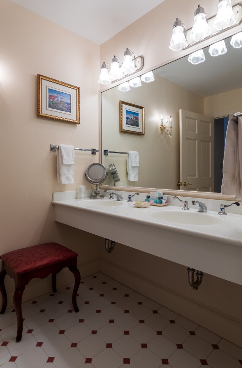 Admiral's Quarters Room 14 is een premium penthouse-suite met 2 kamers en een prachtig uitzicht op de haven, de vuurtoren en de oceaan. De kingsize slaapkamer heeft een muur vol ramen, een eigen balkon en een open haard. Een tweede kamer biedt een uitschuifbaar bed met twee eenpersoonsbedden en ingebouwde opslag met een minikoelkast. Geniet van een inloopdouche en twee ingangen - één privé. Perfect voor stellen of kleine groepen die op zoek zijn naar een schilderachtig, rustig toevluchtsoord in Boothbay Harbor.