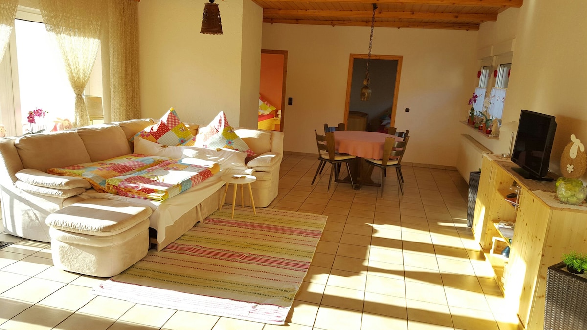 Geniet van uw verblijf in een onlangs gerenoveerde halfvrijstaande woning met uitzicht op de Donnersberg. Gunstig gelegen op enkele minuten van de snelweg, biedt het appartement perfecte verbindingen met de Niebelungenstadt Worms, Kaiserslautern, Mainz, Mannheim en Frankfurt. Geniet van de rust van de accommodatie, die uitnodigt om te wandelen of te blijven hangen in de natuur, of ontspan tijdens een stedentrip om meer te weten te komen over de geschiedenis van de North Palatinate.