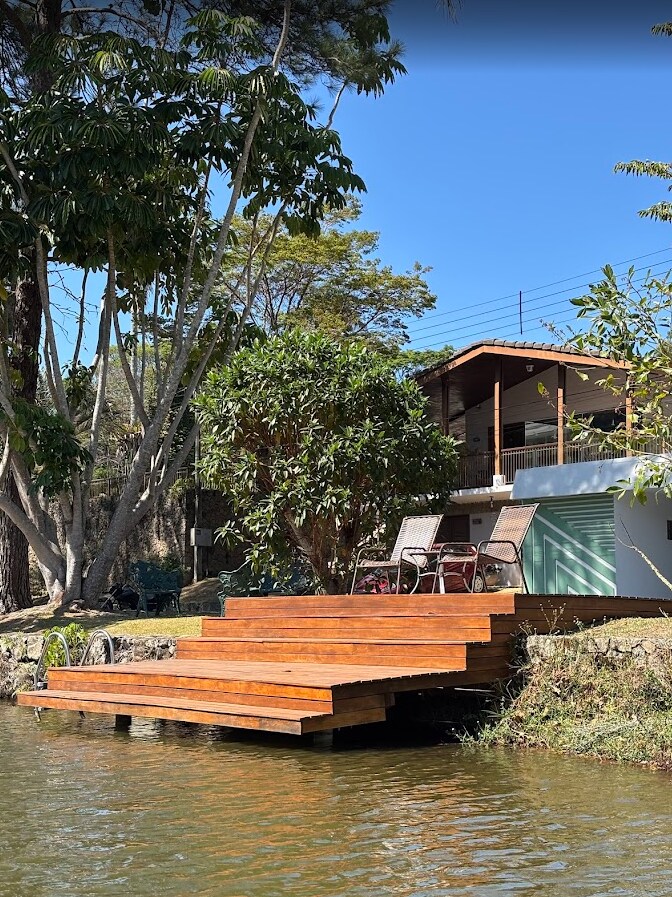 Geniet van de warmte van een prachtig huis in het complex, midden in de natuur, met de mogelijkheid om verschillende vogelsoorten, marmosets, eekhoorns van het Atlantische Woud te zien en te horen, waardoor dit een speciale ervaring is met familie en vrienden. Wandelen buiten, met uitzicht op een prachtige dam, wandelen in het midden van de bomen en fietsen zijn aangename opties binnen de structuur van ons condo. Rustige en veilige plek voor diegenen die willen opladen in contact met de natuur. ALLEEN motorvrije waterscooters toegestaan, zoals opstaan of kajakken Geen toegang via het jetski condominium of een ander gemotoriseerd schip is toegestaan.